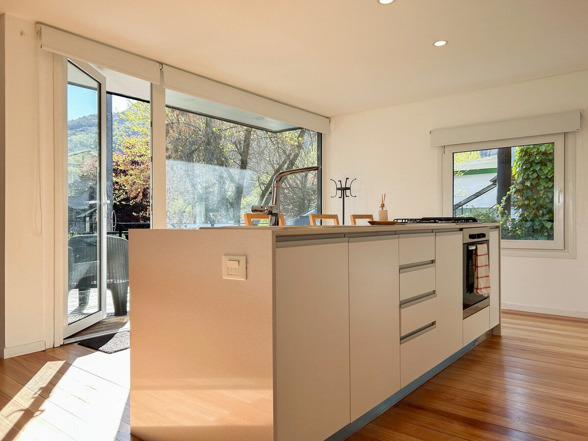 New and elegant downtown apartment in a very quiet area, with magnificent views of the mountains. Two blocks from Plaza Sarmiento. It has adjustable underfloor heating. It does not have parking, you can park on the street for free.