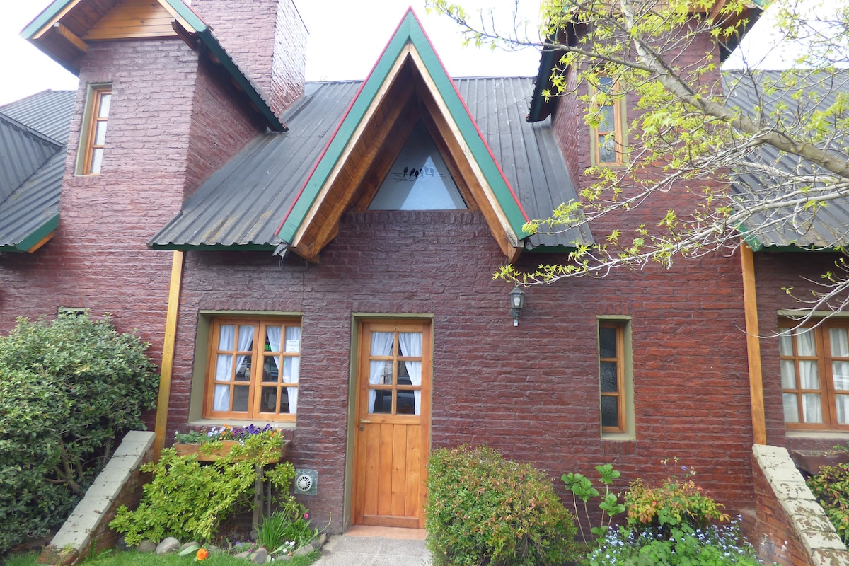Cálida Cabaña de madera rodeada de naturaleza, con espacio verde para asados, a 3 minutos del centro. Se combina lo simple y el buen gusto. Capacidad hasta 5 pasajeros. Vecina a Casa Los Robles, apta hasta 8 pasajeros, ideal combinación - CASA Y CABAÑA LOS ROBLES - para vacacionar con amigos y familias numerosas. (ver publicación "casa Los Robles" en air b&b ) Jardín aterrazado, acceso por escaleras.Estacionamiento frente a la Cabaña.