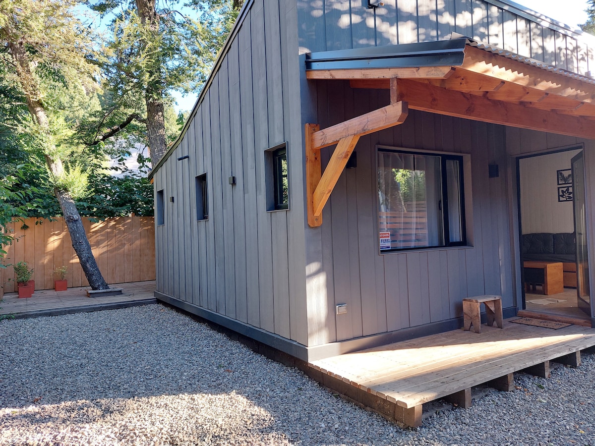 Escápate a tu refugio en San Martín de los Andes. Entre árboles nativos esta tiny house combina el diseño de las casitas de pastores inglesas y calidez de montaña. Disfruta del deck privado con vista a la montaña, un café al amanecer y noches bajo cielos estrellados. Salir a caminar y perder la noción del tiempo entre senderos de Coihues y Amancays llenando el pecho de aire puro. A 10 min del centro es perfecta para parejas que buscan privacidad, aventureros y amantes de la naturaleza.