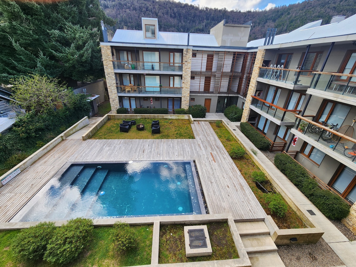 Hermoso departamento, amplio y luminoso, cuenta con piscina templada. Ubicado a 300 mts de la Plaza Sarmiento, 400 mts de la calle principal de San Martin de los Andes, en la Patagonia Argentina. Cocina con equipamiento super completo, baño con bañadera, living, 2 sommiers individuales que se pueden unir haciendo una cama matrimonial (twin-together), ropa blanca, Smart TV y WIFI. En el Edificio: pileta, gimnasio, sauna, sum con parrilla y lavadero (estos 2 últimos con costo adicional)