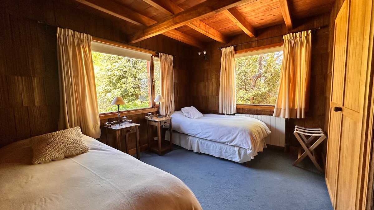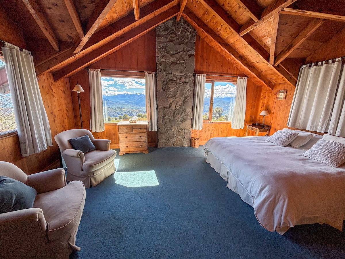 Nuestra Suite Colibrí cuenta con dos habitaciones y un baño completo, es ideal para disfrutar en familia o en grupo. Se encuentra en el primer piso, al que se accede por escaleras. Con formato de hostería, La Posada ofrece amplios y encantadores espacios comunes donde disfrutar la tranquilidad de la montaña, el entorno de bosque nativo y los increíbles atardeceres. Disfruta también desayuno incluido y servicio de cenas a pedido, con un menú único del día.