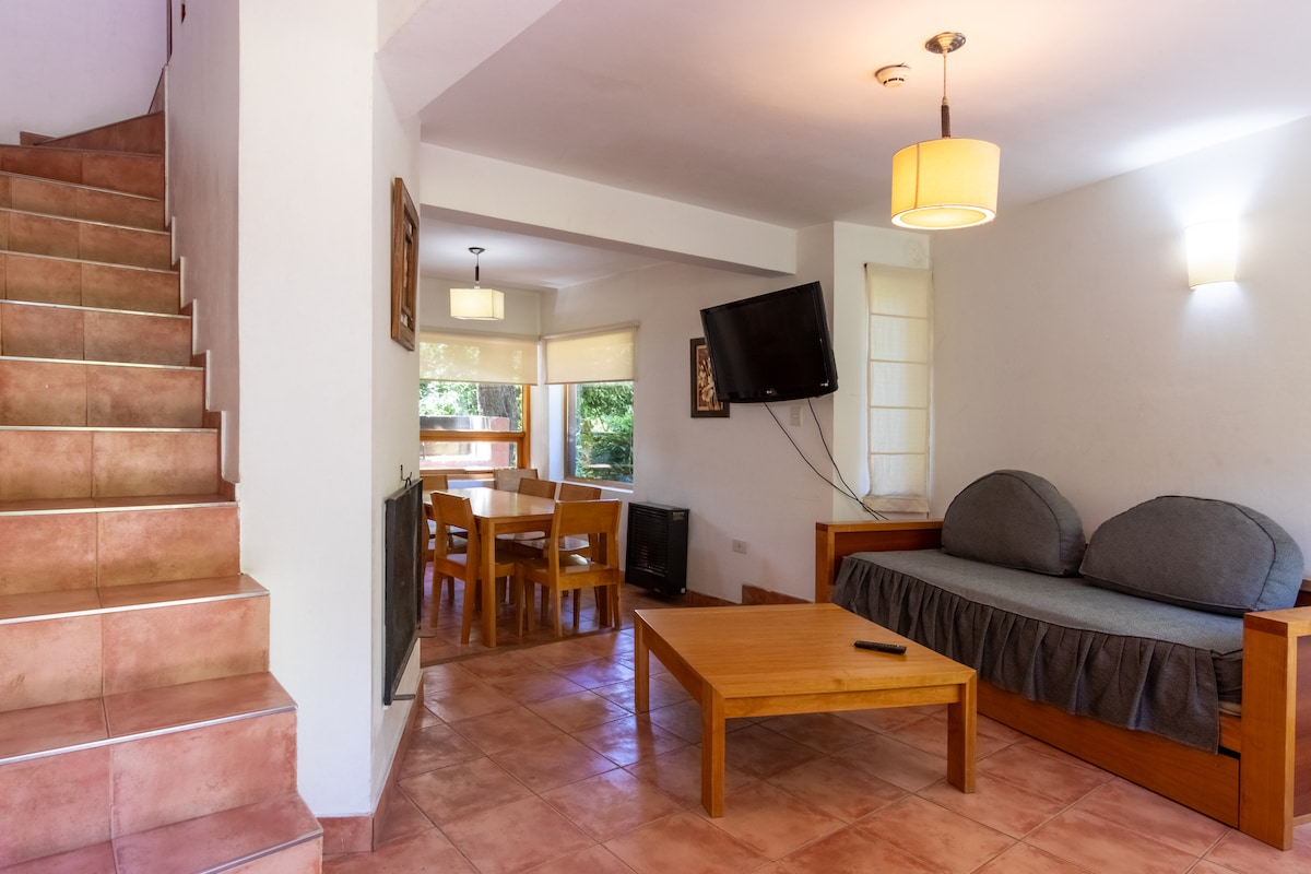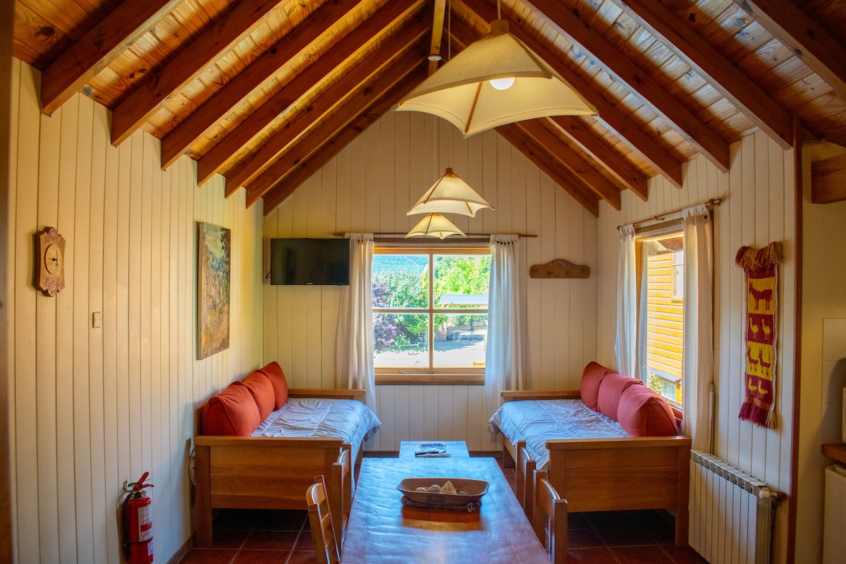 La cabaña está ubicada dentro de un complejo vacacional de 4 estrellas cercano al centro de la ciudad y del Lago Lacar con su costanera. Tiene capacidad para 4 personas y cuenta con amplios ventanales con una privilegiada vista al parque natural y las montañas que rodean a esta hermosa ciudad. Dispone de cocina equipada con vajilla completa para 4 personas, ropa blanca y además tiene un servicio de mucama. El desayuno NO está incluido en la tarifa pero puede contratarse en el complejo .