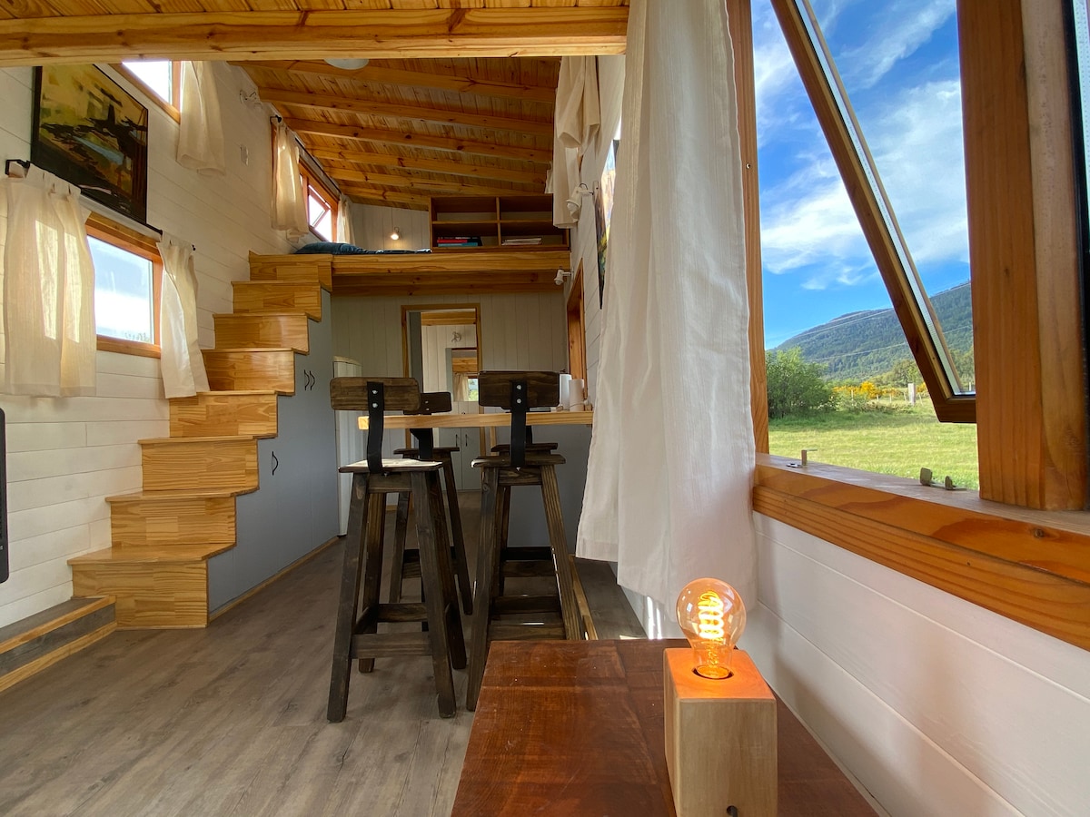“In a native forest surrounded by mountains, with the Quilquihue River just 100 meters away and Lake Lolog only 300 meters away, you’ll find Encuentro Silvestre in a residential neighborhood, set on a 3,400 m² lot with wide open views. This tiny house on wheels is fully equipped with everything you might need, so you can enjoy an unforgettable vacation—comfortable and connected with the natural paradise around us. On the same property, there are two more 30 m² cabins and my workspace.
