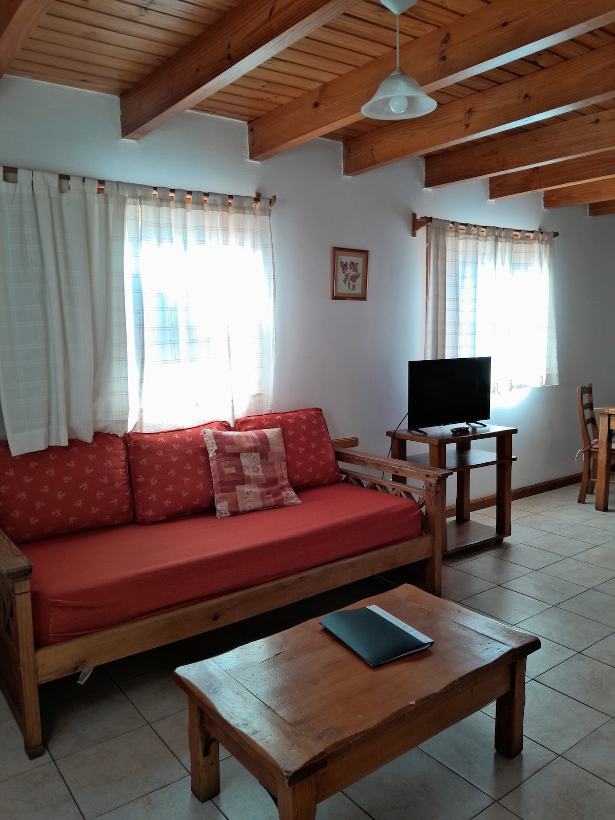 En esta cálida cabaña, disfrutaras vuestra estadía rodeado de un impresionante entorno para el relax y recargar energías. Nosotros te estamos esperando En su interior, podras encntrar un confortable estudio con un escritorio y una buena conexión a internet, especial para nómades digitales Posee parrilla donde puedes hacer unos ricos asados Se encuentra a 6km del centro , a 100m de la Ruta 40 y todo sobre asfalto. En un radio de 500m hay todas las tiendas de cercania necesarias