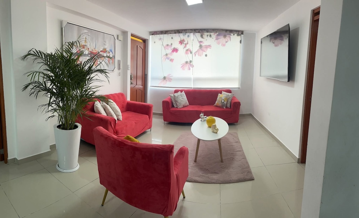 Disfruta de la sencillez de este alojamiento tranquilo y céntrico. Cerca al aeropuerto, centros comerciales y bancos. apartamento muy espacioso y acogedor y sobre todo que adoramos a las mascotas ya que es pet friendly . el espacio cuenta con una habitación (2 plz ) y con un sofa cama. cuenta con armario, tocador, zapatera, televisor y baño privado. en la sala hay un sofa cama con una mesa pequeña, televisor smart y cuenta con una amplia terraza PROHIBIDO FIESTAS Y O EVENTO