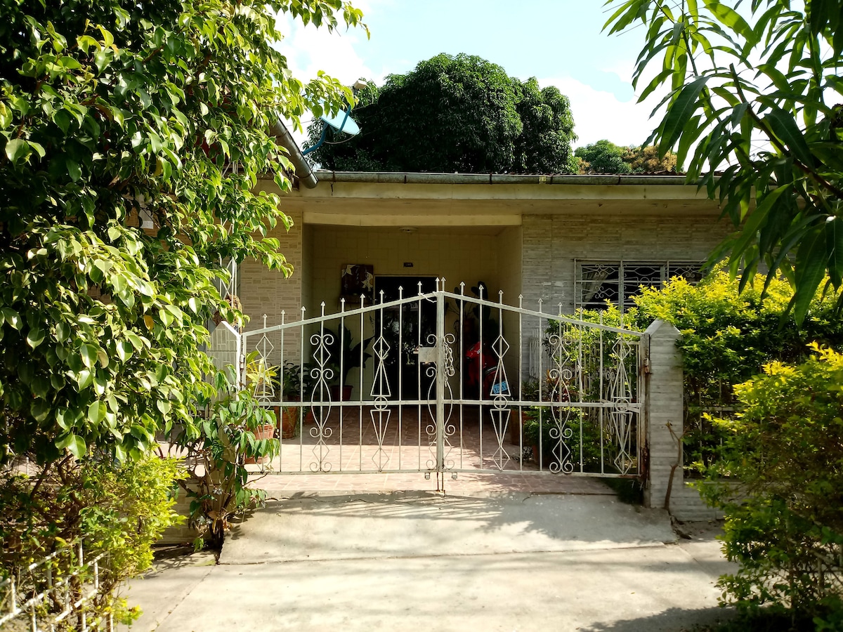 Amplia casa con jardín, a solo 5 minutos del centro de Tarapoto. Disfruta de un terreno de media hectárea con: - Áreas verdes - Pista de baile - 3 habitaciones - Cuarto de estudio - 3 baños (1 en el cuarto principal) - Lavandería - Espacio para dos carros - La compañía de nuestras 3 amigables mascotas. - La casa se entregará amoblada con servicios básicos y WiFi incluidos.