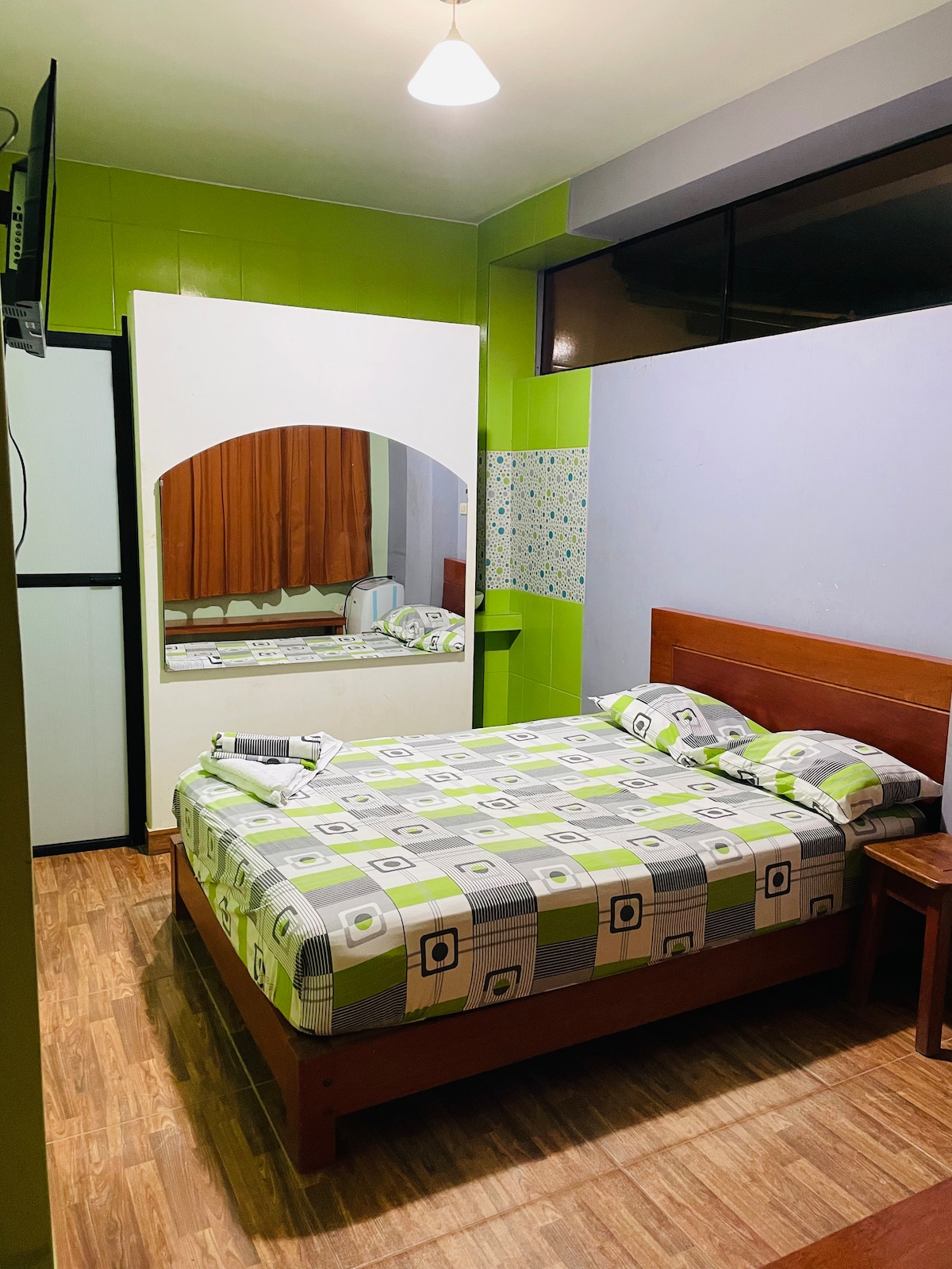 ✔️ Cama Queen cómoda, ideal para descansar tras un día de aventuras por cataratas y lagunas. ✔️ Espacio ventilado, con luz natural, baño privado y agua caliente. ✔️ Decoración cálida con esencia amazónica que inspira calma. ✔️ Ambiente sereno para parejas que valoran la limpieza, el silencio y el buen trato. ✔️ A pasos del centro de Tarapoto, en una zona segura y tranquila. 🌿 Elige una experiencia cercana, natural y auténtica, te hará sentir como en casa. 🌿No incluye Desayuno