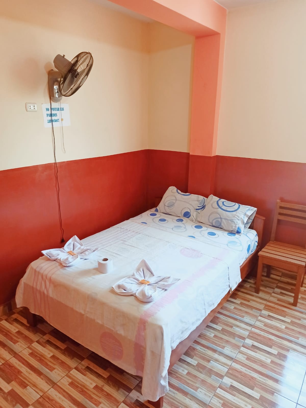 La habitación es muy acogedora, con una cama de 2 de plazas. A 2 cuadras de la Plaza de Armas de Yurimaguas, frente a Farmacias, Cajas Financieras, Tiendas de todo tipo y Restaurantes. Zona bastante concurrida. Donde podrá encontrar de todo. A 2 cuadras de los bancos.