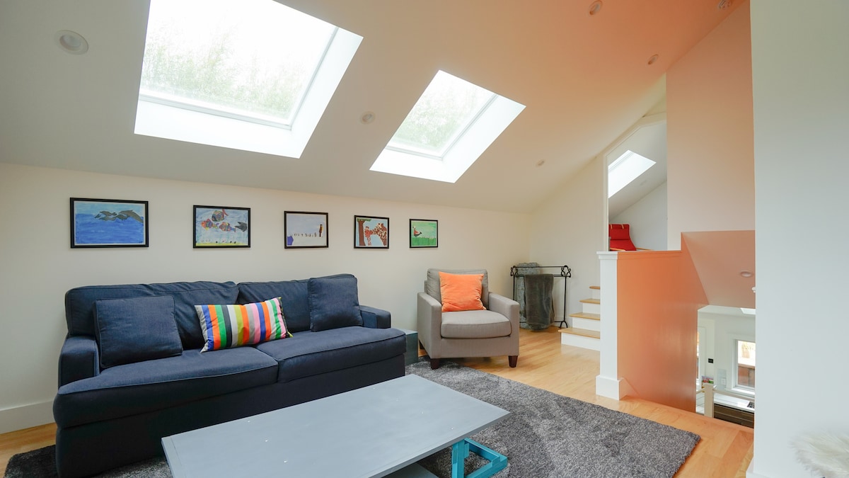 Contemporary 2 story apartment in a safe and quiet neighborhood. Cozy and clean apt, 5 minute walk to the beach, bluff top coastal trail. 10 minute walk to downtown and the farmers market (seasonal). Tesla charger available upon request. Responsive and accommodating hosts.