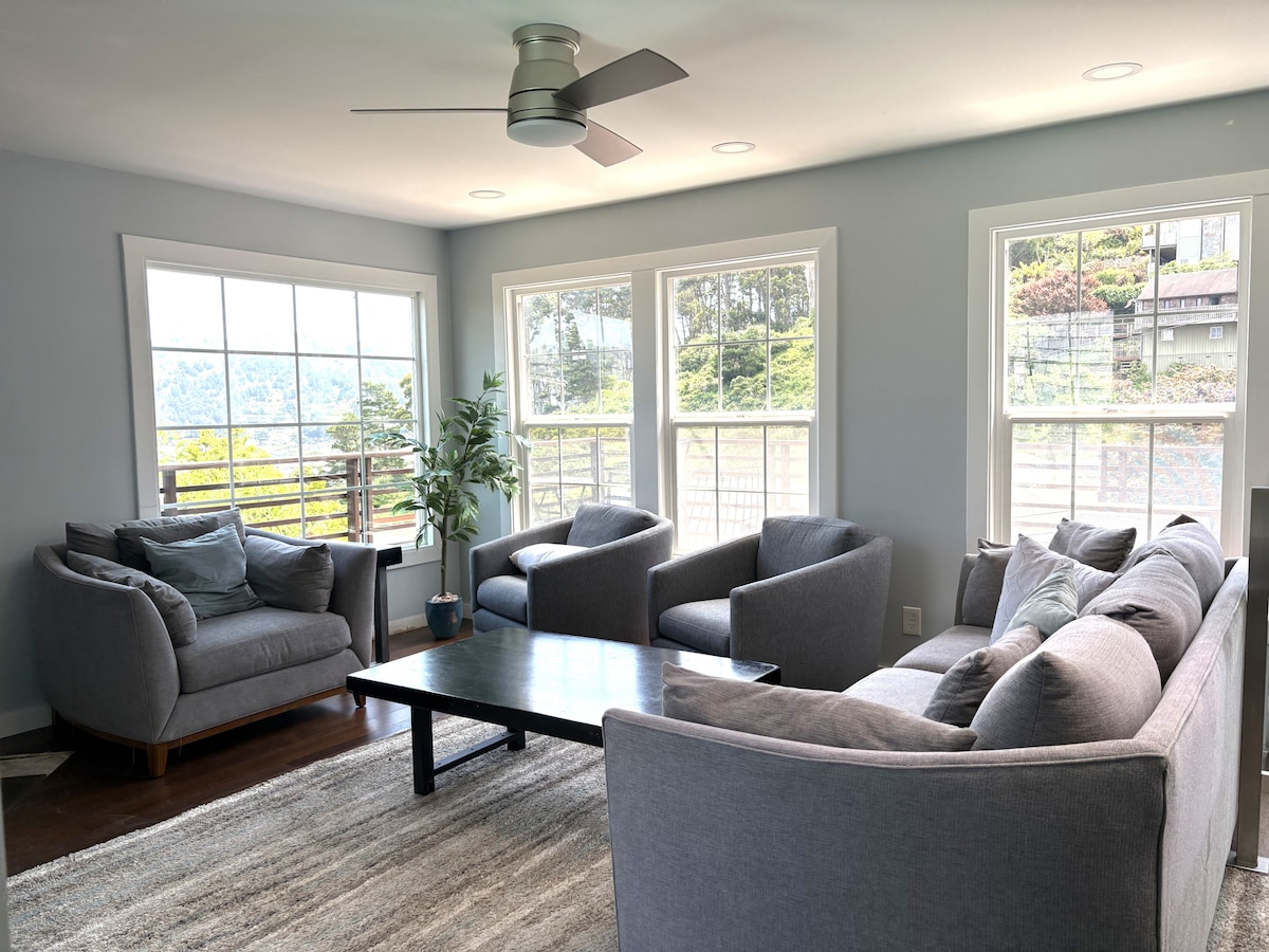 Perched on a dramatic oceanfront bluff, Pelican Bluffs fuses modern comfort with coastal charm. Gaze at pelicans gliding over crashing waves, create masterpieces in the the gourmet kitchen, enjoy playful havens for family time, and find workspaces where inspiration abounds. End your day, gathered around the gorgeous fire pit as the fiery sunset turns into a canopy of stars and unforgettable memories see additional photos section for prior reviews from an earlier host