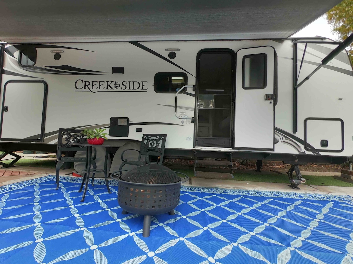 This memorable place is anything but ordinary. Enjoy a quiet and relaxing getaway while being in close proximity to San Francisco and Silicon Valley. This RV trailer can accommodate up to 2 adults and 2 kids. Eat out in nearby downtown San Mateo. Or, stay put and enjoy indoor or outdoor dining in the patio, start up the fire pit and grill and sit back and relax at the spacious yard.