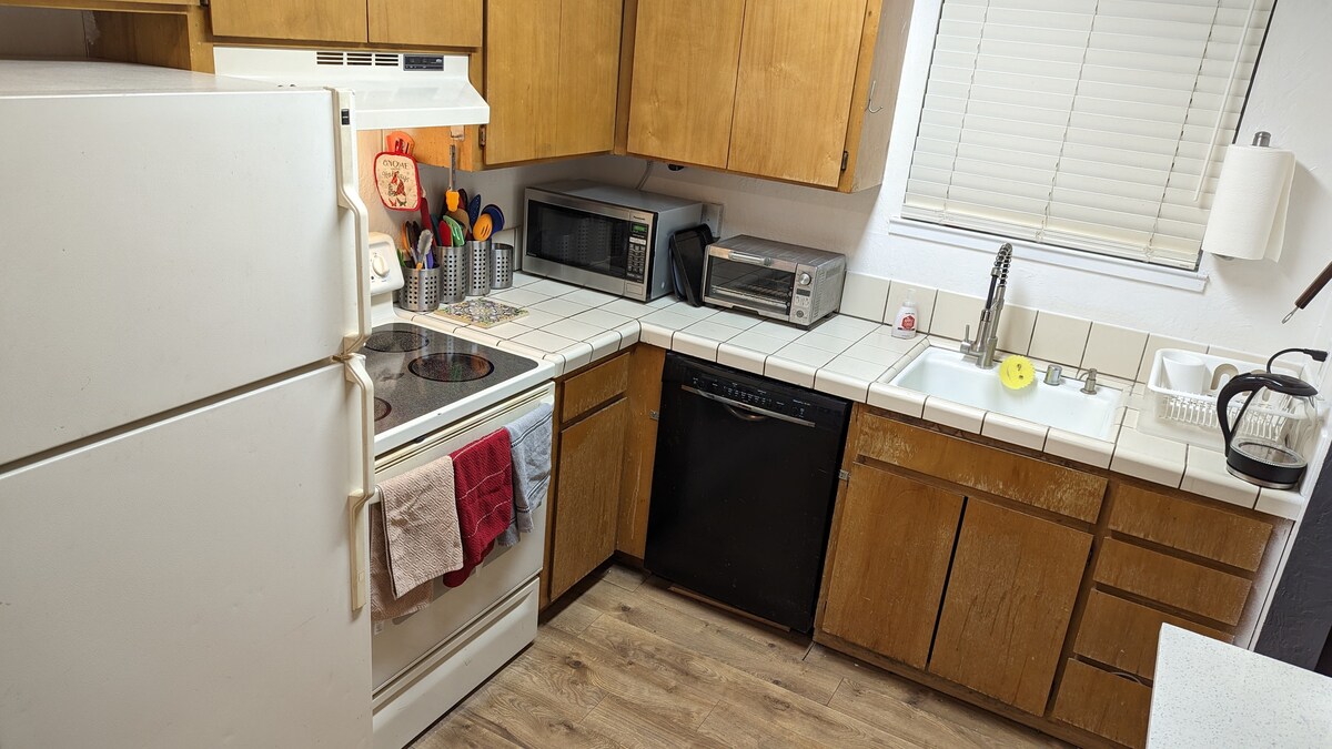 Guest house is attached to our primary residence but has a separate exterior entrance. The interior is separated by double doors that lock from both sides, similar to adjoining hotel rooms. The backyard is shared by us, the owners. There’s a very real chance you’ll be greeted by our friendly Australian Shepherd, Gracie, during your stay! You may see us in the yard during your stay. Feel free to say hi! Otherwise, we like to give our guests privacy.