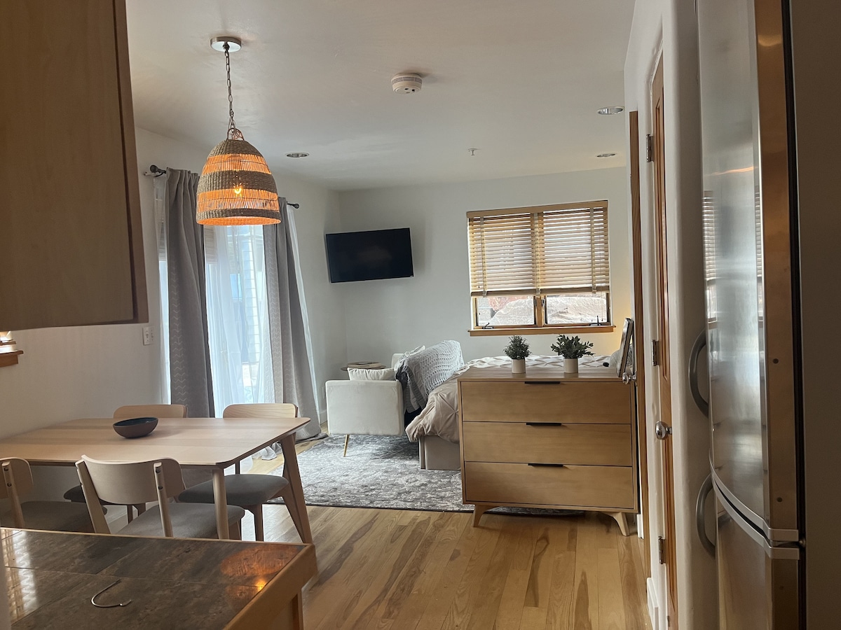 Welcome to the newly renovated SQRL nest. Our cozy retreat is the perfect place to relax and enjoy the breathtaking surroundings. Beautifully designed, modern space with a 9' window with mountain views, a queen bed and twin sleeper couch. Our kitchenette is equipped with a mini-fridge, beverage fridge, 3-n-1-microwave, convection oven, air-fryer, and coffee maker. Perfect for preparing quick meals or enjoying a snack. The spa bathroom provides plush towels, robes, and luxury amenities. BL #46.