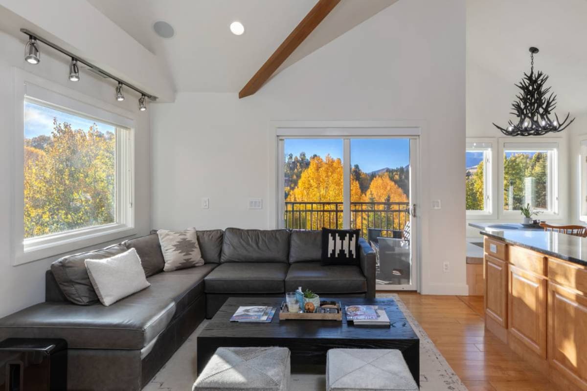 This beautiful condo is conveniently located on the stunning Valley Floor. A 2 mile walk, bike, bus, or drive to Telluride. Enjoy great natural light, a private deck, fireplace, vaulted ceilings, and comfy beds. The environment is ideal for couples, solo adventurers, business travelers, and families looking for a place to relax after skiing, hiking, or enjoying the summer festival. With a full kitchen, bathroom (with bathtub), washer and dryer, and everything you need for your stay.