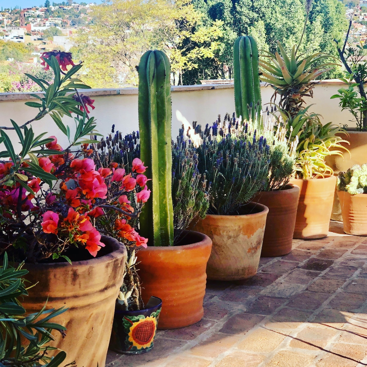 Magnificent views & location. Directly above the Parque Juarez and down from the Mirador lookout. Just a few blocks away from the main square. Our home is set behind and above another property, allowing for a tranquil and private setting, while enjoying stunning panoramic views of the center of San Miguel, its churches and the distant countryside. The four levels of this property allow for a clear definition of the space, yet terraced into one another, creating a feeling of amplitude while benefiting from lush greenery from the surrounding trees and walls covered with vines. Multiple terraces and fountains set the tone for a relaxing atmosphere in the clean bright interiors that are reminiscent of the Mediterranean. On the main level you will find the living room, dining room, and fully equipped kitchen with whole house water purification system, as well as a balcony and the guest bedroom with en suite bath. Below there is a private garden with a studio providing the perfect atmosphere for artistic creation. The master bedroom, located upstairs, is amazing and is wide and open. The centrally located king size bed faces the view, french doors and balcony. The en suite bathroom has a large shower and skylight above. Just off of the bedroom is an en-suite office providing internet and wifi throughout the house and overlooking the XVII Century Chapel of the Holy Cross of Chorro, the second most historical setting of San Miguel de Allende. Directly above the master bedroom you will find the most awe-inspiring view of San Miguel from the sunning terrace or the comfort of a large shaded terrace. Enjoy a sunset cocktail or espresso from the rooftop bar as you relax and take in the view. I will work with you on all the details prior to your arrival. Once in San Miguel, our house manager, Jose, is in town and available. Esmeralda, our housekeeper, will be by 3 times a week on Tuesdays, Thursdays and Saturdays, typically around 9 am.