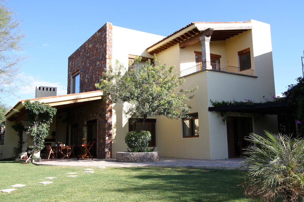 Villanueva is an ideal retreat for one or two couples wanting a touch of luxury and thoughtful design on a quiet cul-de-sac street. It is also perfect for a family of up to 6 traveling with parents or older kids. Some of the towns best cafes are just around the block and yet it’s also short & easy walk to the heart of Centro. Weather you are attending a wedding, doing work with fast 300Mbs WiFi , or just want a special place to be for your San Miguel de Allende visit, experience Villanueva !