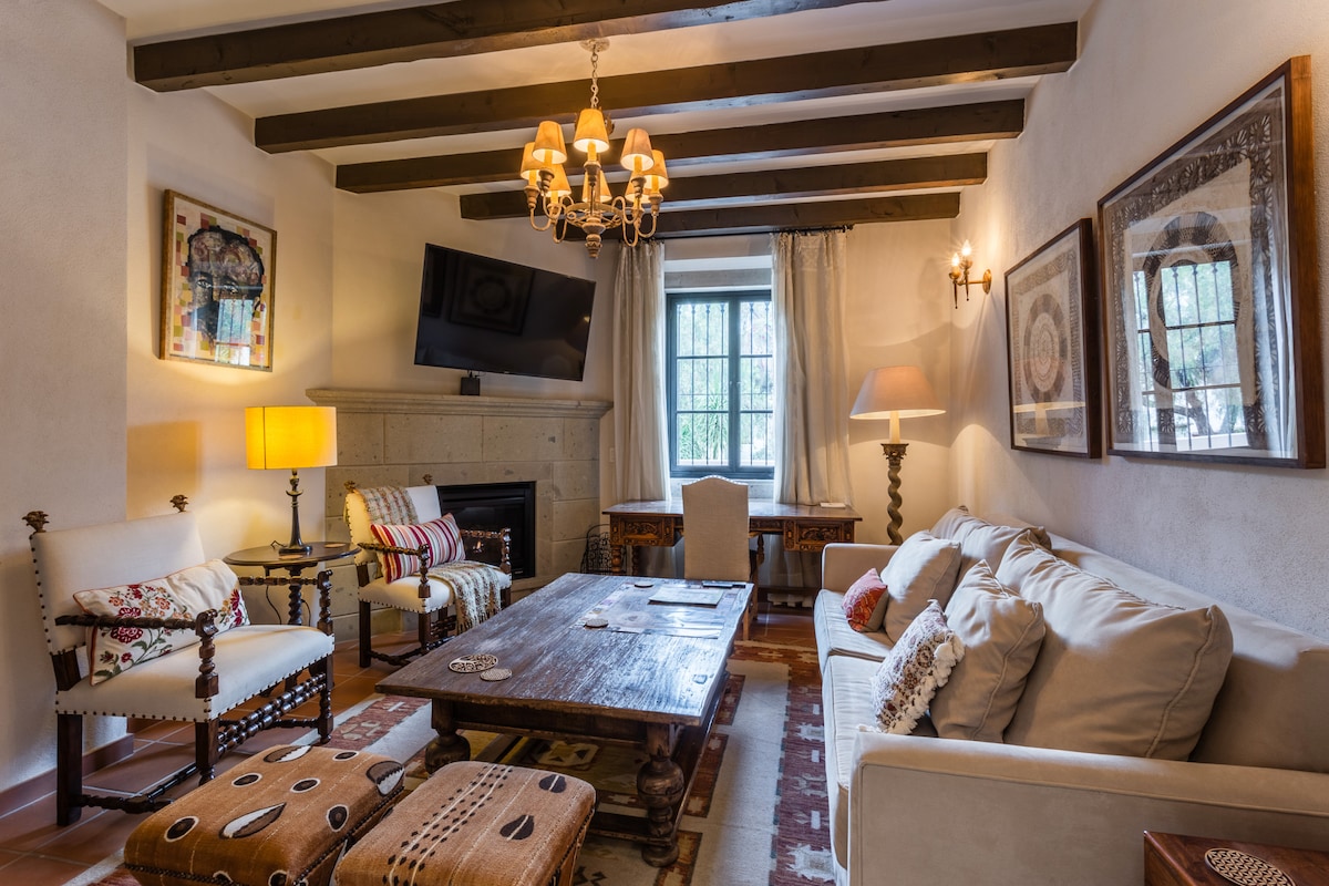Iconic 18th-century home just one block from the Parroquia, in the heart of San Miguel. This three-story gem blends traditional architecture with Mexican art and modern comforts. Fully equipped with comfortable beds, full bathrooms, a charming terrace with private jacuzzi, and original colonial details. Located in the prime quadrant, next to the historic Casa Dragones, and surrounded by galleries, restaurants, and the vibrant town center. History, style, and comfort all in one place.