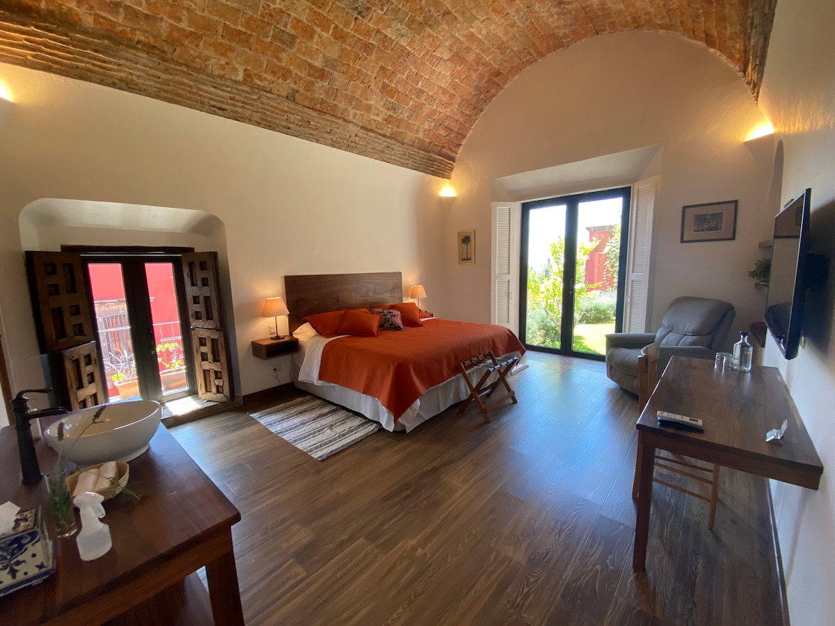Private Room in lovely Santa Fe style Villa ZenZontle conveniently located in the countryside and only a 10-minute drive from downtown SMA. Enclaved in thermal waters Zone near Mayan Baths underground Spa for grownups, and very close to XOTE Aquatic park for families. Ideal for couples seeking rest & relax with quiet nights of stargazing and exploring the area, with full, delicious breakfast served in the morning. ASK ABOUT OUR PET FRIENDLY RATES AND RULES BEFORE RESERVING.