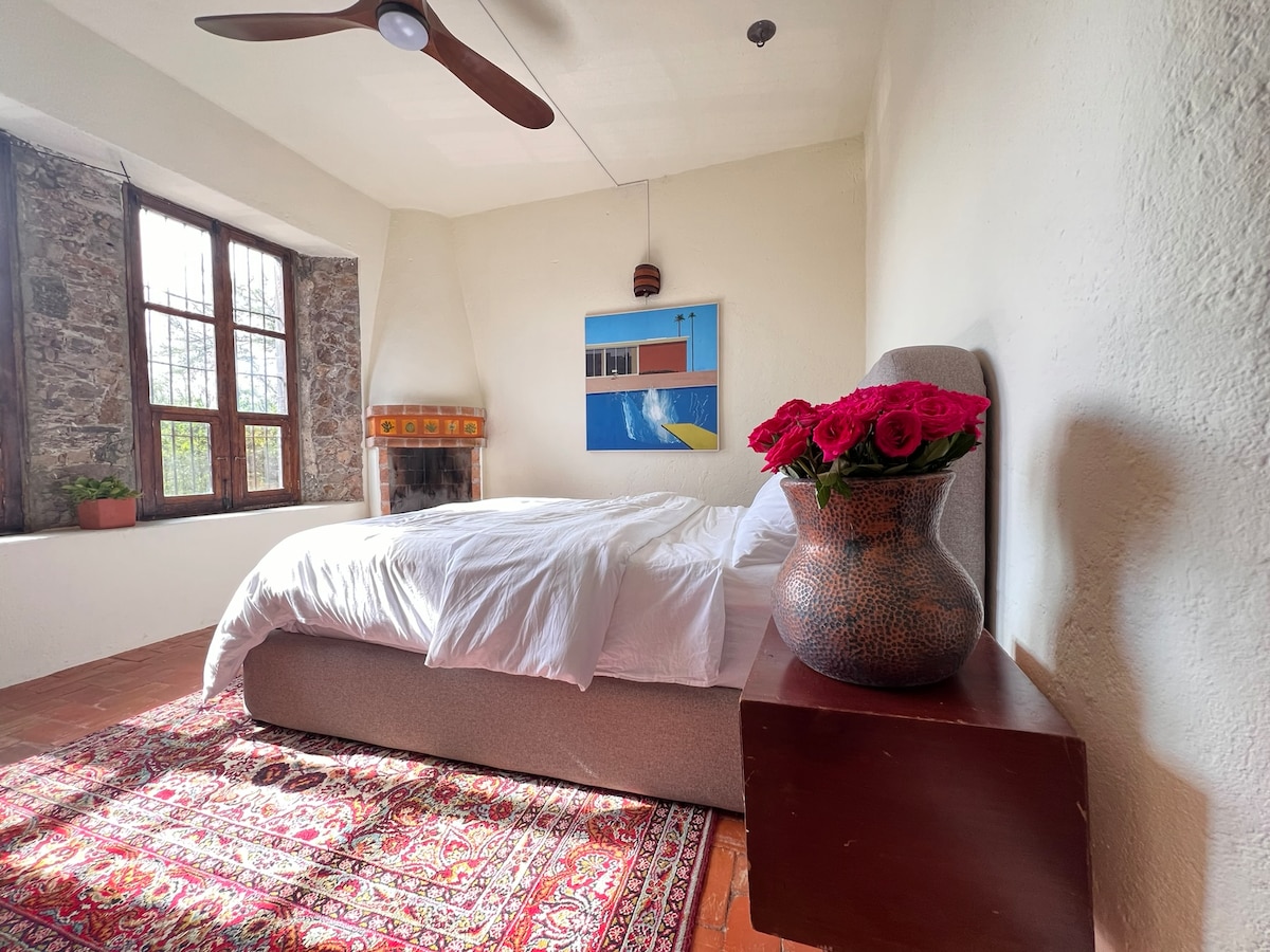 Habitación dentro de El Alcazar, hermoso hotel boutique en el corazón de San Miguel, a tan solo unos pasos del Jardín Principal, la Parroquia, museos; y los restaurantes, bares y boutiques mas exclusivos de la ciudad. La habitación está totalmente equipada para un descanso confortable. Cuenta con un acogedor patio interior y acceso directo al reconocido restaurante La Posadita con hermosas vistas de la ciudad, donde podrás disfrutar un delicioso desayuno o tu mezcal de bienvenida incluidos.