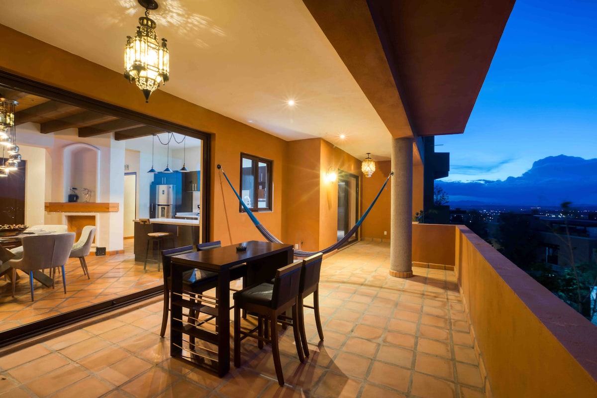 Beautiful House with Mexican Art. The House is inside a lovely Ranch with spectacular views. It has a pool and private security 24/7. The house is located 7min from the "PUEBLO" zone, 15 min from 3 famous vineyards with tours and wine testing, and 3 min from thermal water pools inside caverns. We are the perfect place to rest, enjoy a drink with a great view with family and friends, to have fun and to really get to know the entire city and not only the "PUEBLO" zone.