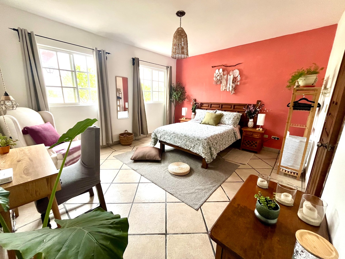 Esta cabaña con decoración estilo Boho chic tiene una ubicación privilegiada a tan solo 13 minutos caminando cuesta abajo al centro de la ciudad. Está diseñada para personas que quieran disfrutar de la belleza de San Miguel, pero que busquen hospedarse en un lugar tranquilo y alejado del ruido, con estacionamiento, pero lo suficientemente cerca para poder llegar al centro caminando o en coche en 4 minutos. Practica yoga, medita o trabaja desde casa en un ambiente cálido y relajado.