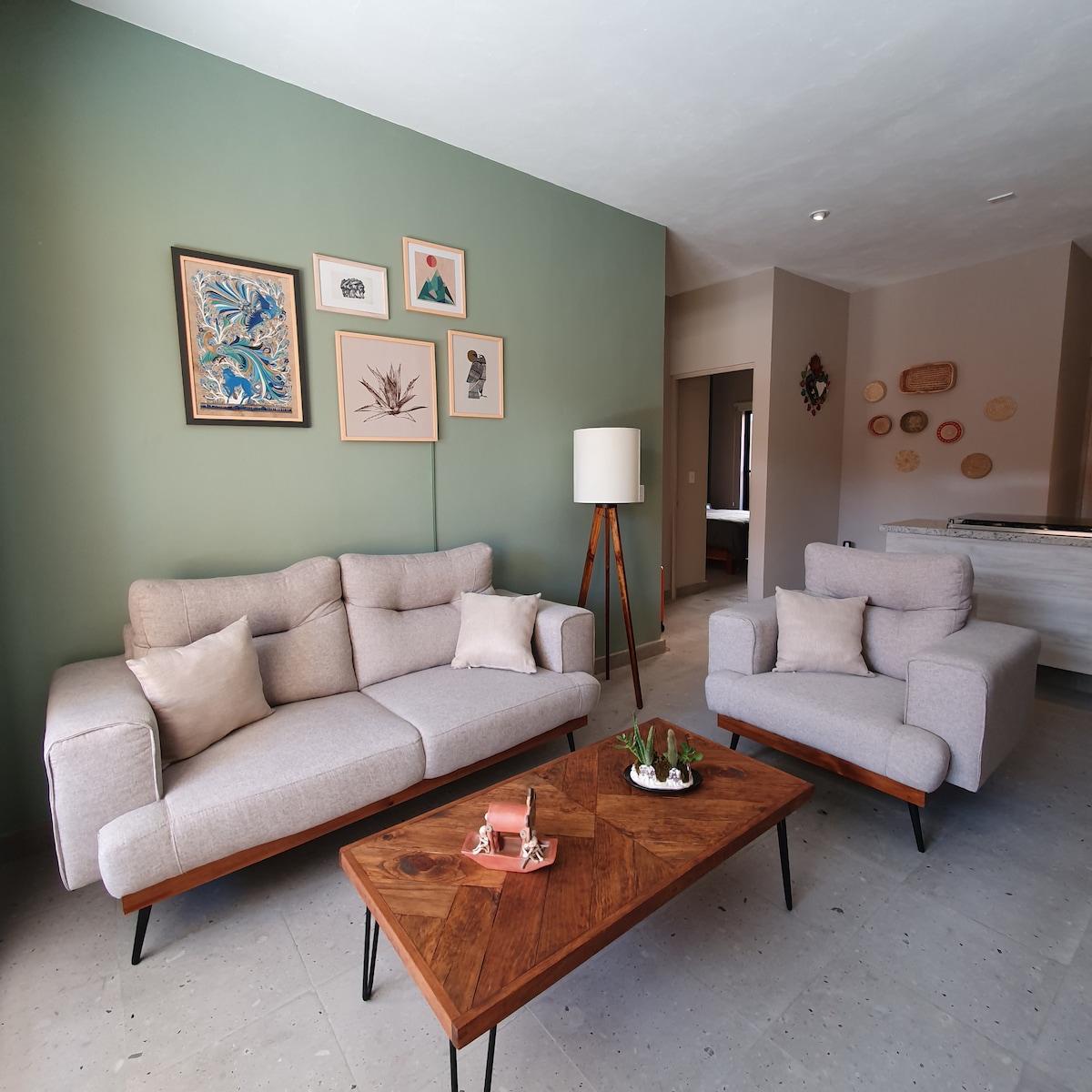 Newly & beautiful apartment inside of La Luminaria residences. Ideal for four people. This apartment has all you need for a perfect stay. The Rooftop is totally private and has charcoal grill where you can enjoy they space and views from the terrace roof. Parkinglot Smart lock (Keyless) Security 24/7 Kitchen fully equipment Smart TV with Netflix included Fast internet/Wifi (Fiberoptic)