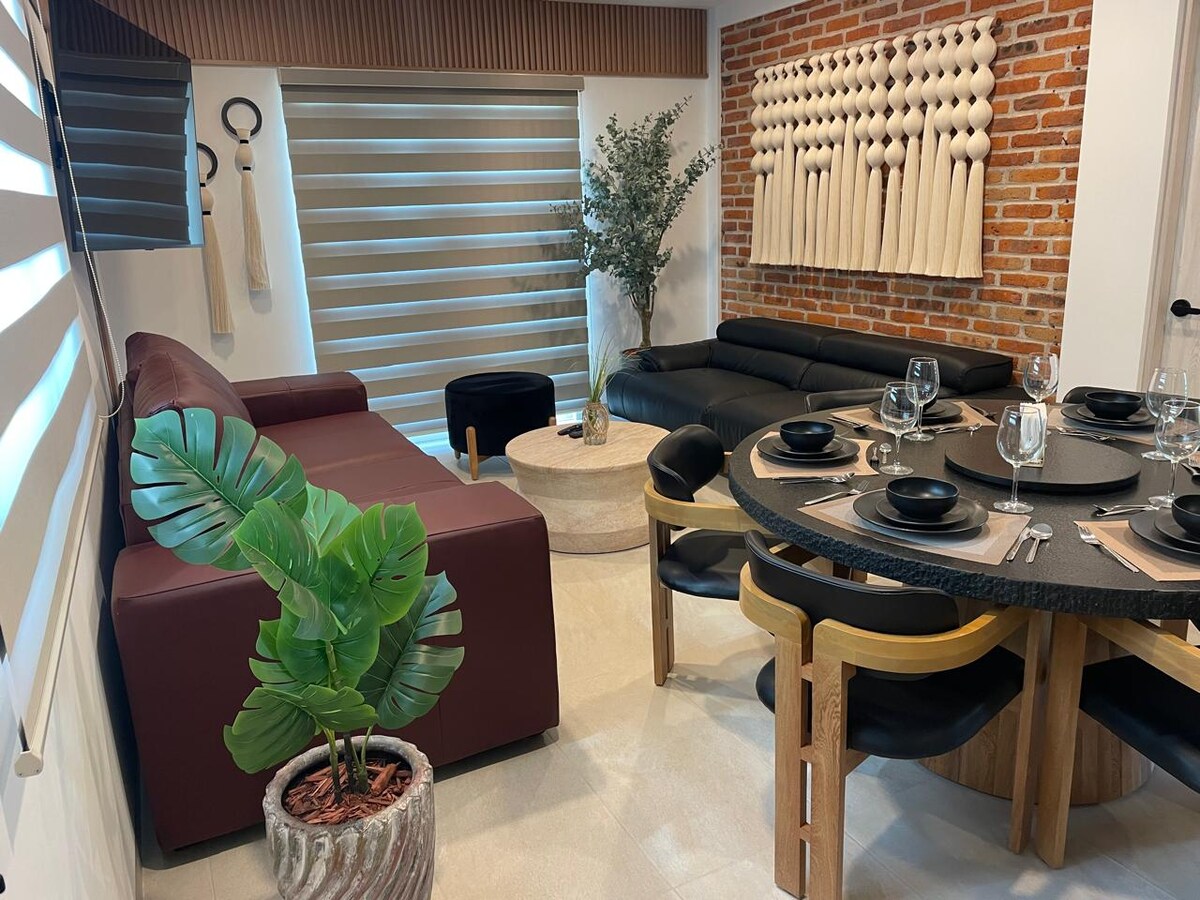 Muy cerca de el centro, Apartamento de dos recamaras, dos baños, amueblado, Alberca, lavadora, secadora, Roof Top y balcones, con vista a las iglesias, seguridad 24 horas, un parqueo disponible adentro de las instalaciones, todo lo que necesitas lo tenemos para que disfrutes de la tranquilidad de San Miguel de Allende. Se aceptan mascotas con un costo adicional. familia estará cerca de todo si te hospedas en este alojamiento céntrico.