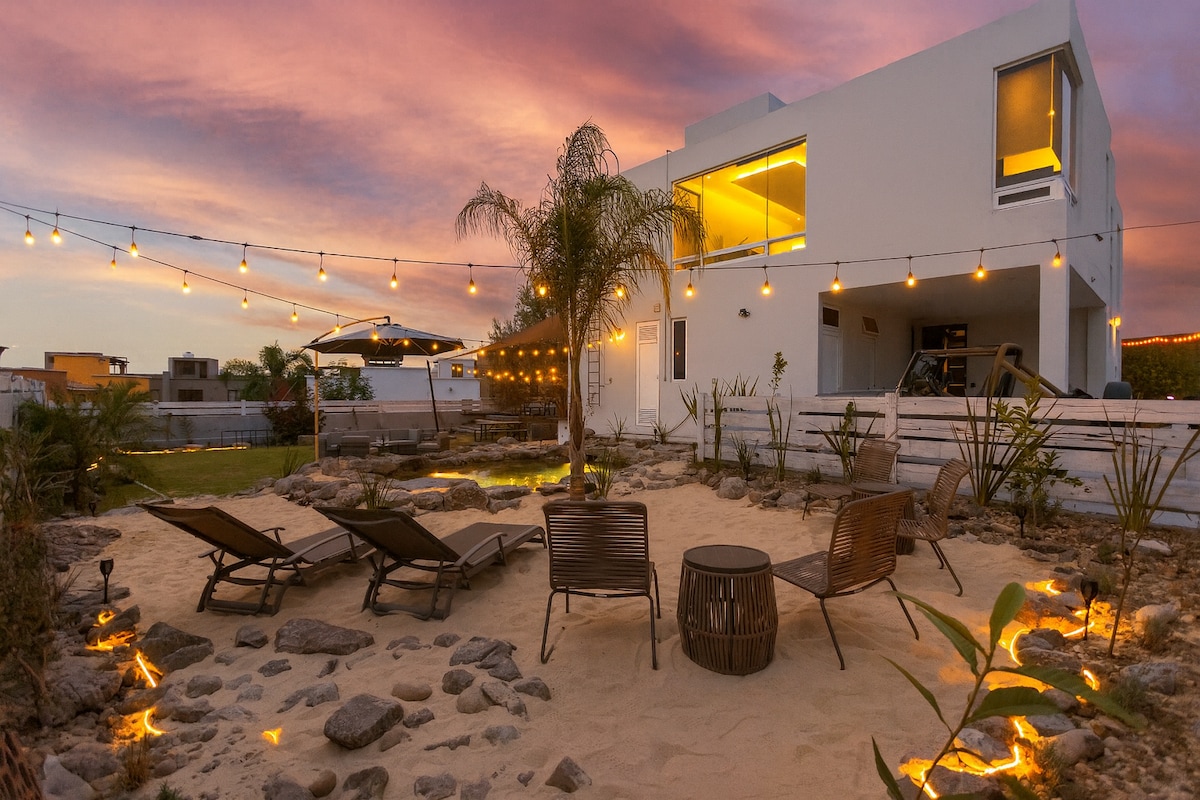 CASA LAVANDA (Nueva), llena de PAZ e Increíbles amenidades. EXCLUSIVAMENTE PARA FAMILIAS Y NO SE PERMITEN FIESTAS. Residencial muy seguro tipo Toscano. A solo 8 min del centro y 4 minutos del Club de Golf. Ubicada a la salida donde son la mayoría de las bodas “Ruta del Vino” Lugar muy tranquilo con vistas espectaculares al campo, tren y a la presita con patos. Amaneceres con globos aerostáticos en el horizonte. La luna y el cielo estrellado, donde lo único que se escucha, son grillos.