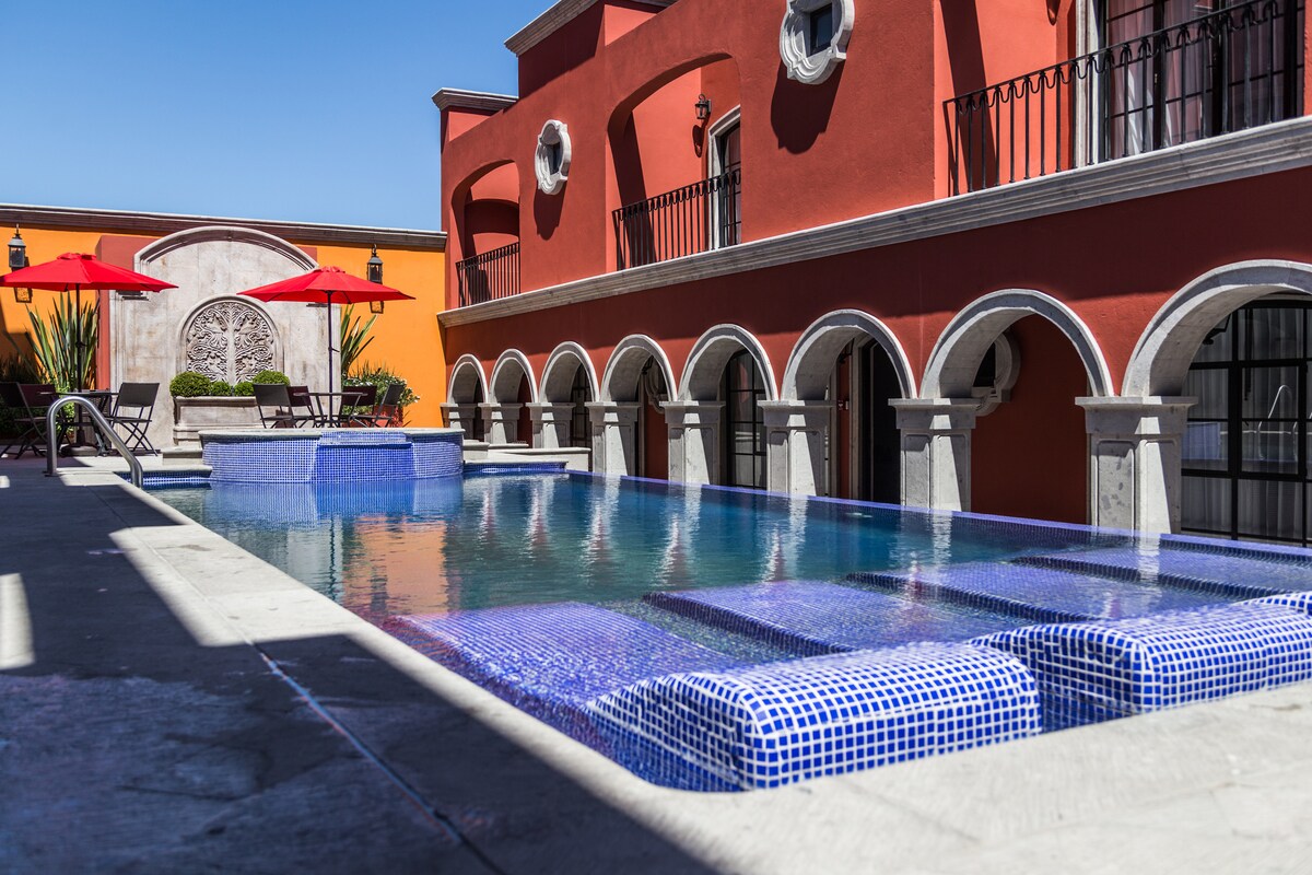 Iconic 18th-century home just one block from the Parroquia, in the heart of San Miguel. This three-story gem blends traditional architecture with Mexican art and modern comforts. Fully equipped with comfortable beds, full bathrooms, a charming terrace with private jacuzzi, and original colonial details. Located in the prime quadrant, next to the historic Casa Dragones, and surrounded by galleries, restaurants, and the vibrant town center. History, style, and comfort all in one place.