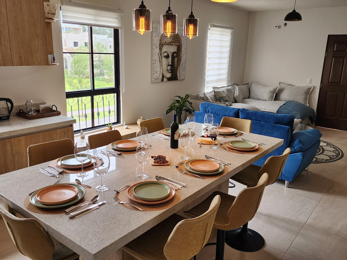 Descubre esta villa única en Capilla de Piedra, San Miguel de Allende. A solo 10 minutos a pie del centro, ofrece 2 habitaciones, 2.5 baños, cocina equipada, sala, terraza, y roof privado. Sumérgete en el lujo de la casa club con alberca, jacuzzi y sauna. Además, disfruta del deporte con el gimnasio y canchas de squash. Ideal para parejas y familias. Vive la experiencia de San Miguel, con todas las comodidades modernas en un entorno histórico.