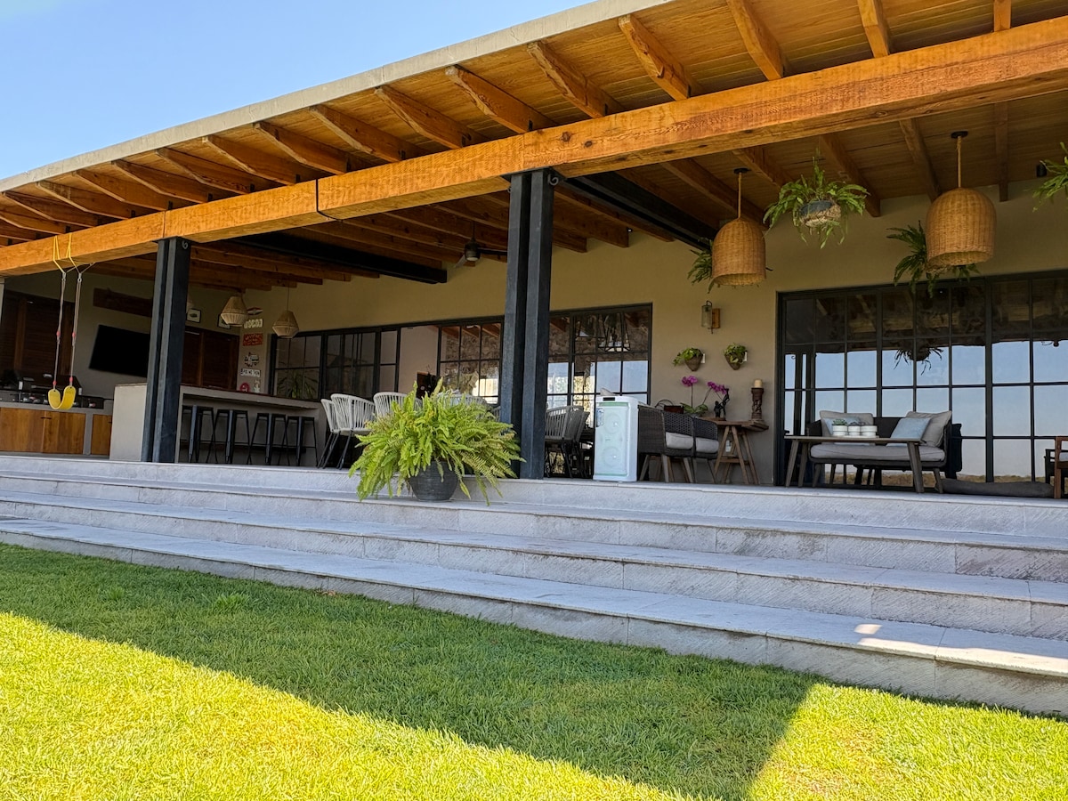 Escápate al lujo del campo a solo 10 minutos del centro de San Miguel. Hacienda del Lago es una hacienda contemporánea con alma mexicana, ofrece 6 habitaciones con baño privado, todas con aire acondicionado, amplios espacios, oficina, alberca, jacuzzi y terrazas con vistas al lago y al campo, enorme jardín con juegos para toda la familia. Incluye limpieza diaria gratuita. Ideal para familias, grupos y celebraciones que buscan naturaleza, privacidad y confort con acceso fácil al centro histórico.