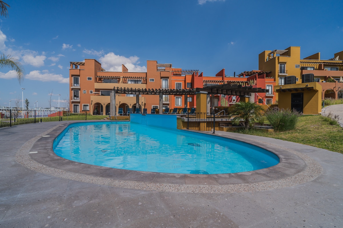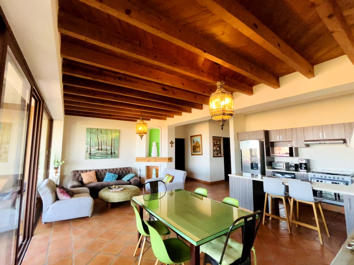 Single-level villa for 8 (including kids), no stairs. 3 bedrooms with en-suite bathrooms in a gated community near downtown with 24/7 security. Features include an open-concept living area, panoramic views, parking, and access to the pool, jacuzzi, gym, sauna, steam room, and squash court. Free shuttle service to downtown, Luciernaga Mall, La Aurora, and La Comer (Mon-Sat). Ideal for a relaxing getaway with all amenities at your fingertips.
