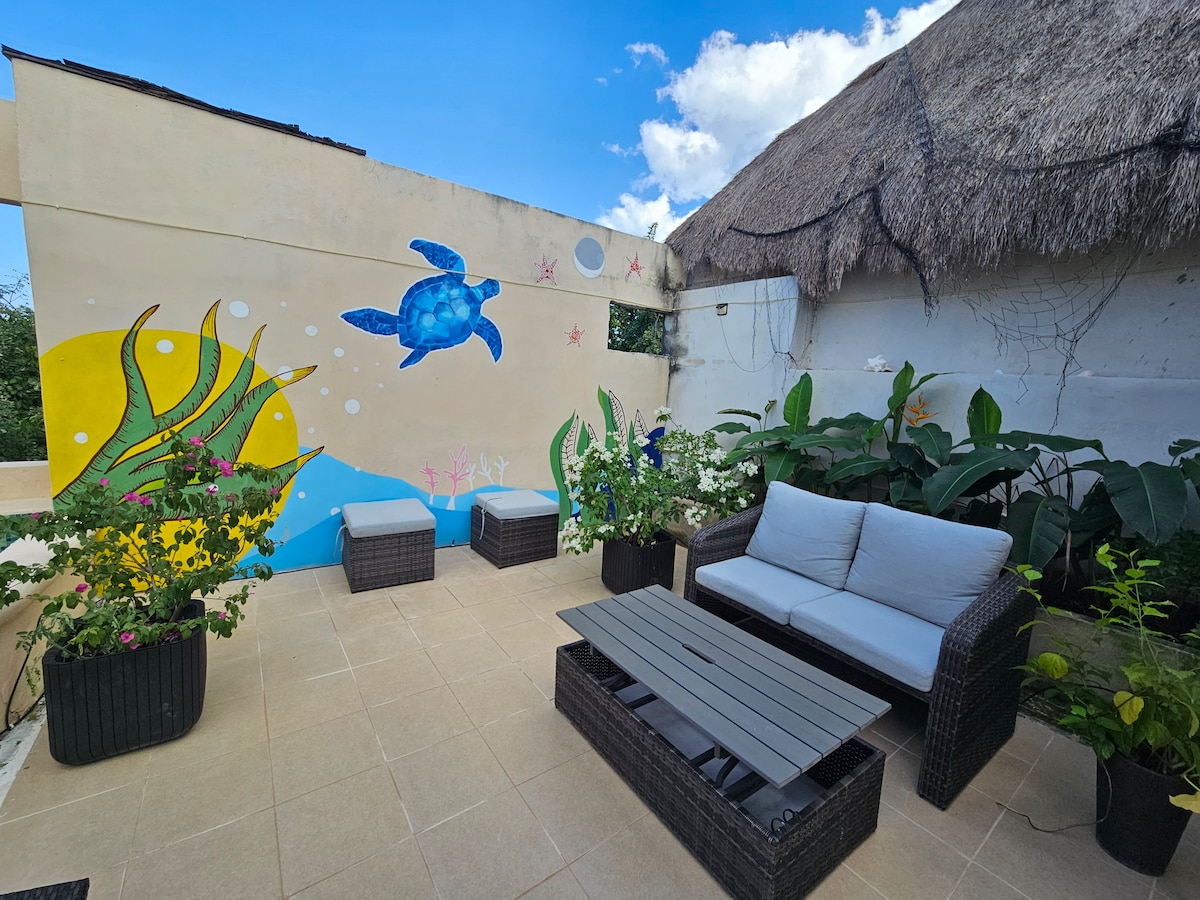 This upscale Beach House is ON THE BEACH in a quiet & secluded area of Cozumel Island only 150 feet from the caribbean sea. Breathtaking views await you. You will have all the comforts of home: Bose sound system, Netflix and Wifi... bring your work with you and stay for a while! We have beach clubs on to the left and right of us. You will not have to walk far for food and drinks. On the roof is a party palapa, which you have full access too. It is shared with the other condo in the building.