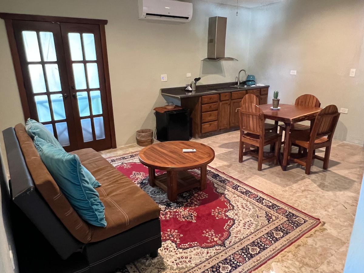 Spacious suite with King bed, 2 full bathrooms, kitchen and living area, pull out sofa bed, mini split air conditioning. Located near waterfront in town and close to great dining. Full concierge services provided as well as optional full breakfast for $6. Plenty of common area lounge space including rooftop sun deck . We will be happy to assist with arranging Scuba diving trips for you during your stay with our approved dive operator.