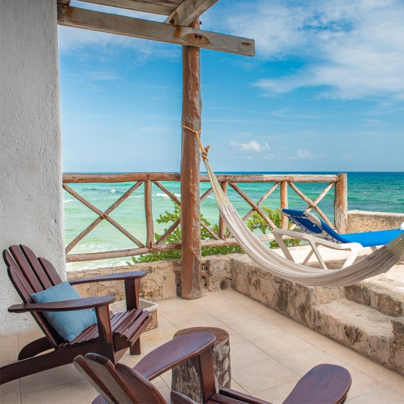 Boutique Hotel located in a privileged area of ​​Cozumel with a lot of privacy, fantastic views, extensive beaches and local food. Perfect for romantic vacations, relaxation and rest or to enjoy a different experience in contact with nature. Suites with ocean views, spacious and bright, comfortable with king-size beds, swimming pool surrounded by lounge chairs and hammocks to enjoy a good cocktail, the breeze and the sound of the waves that characterize this side of the island.