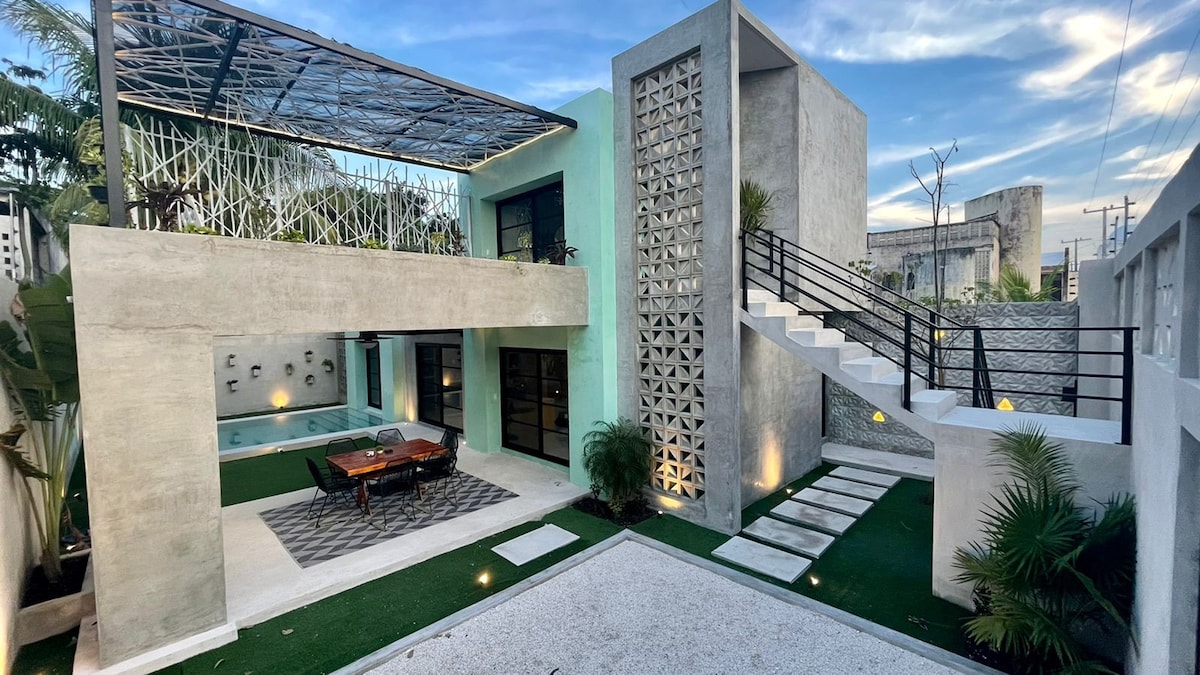Step into your dream Cozumel retreat! This exceptional single-family home features a private plunge pool, a chef’s kitchen, and both covered and uncovered outdoor lounge areas for ultimate relaxation and entertaining. After a day of exploring, unwind in comfort with convenient parking and complete privacy. With 2 stylish bedrooms, 2 bathrooms, and prime access to top dining and diving spots, this is your perfect Cozumel escape.