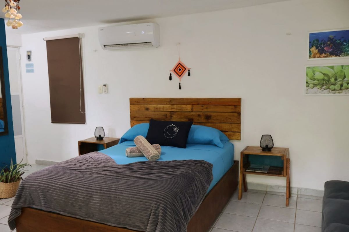 Perfect for beach and nature lovers looking looking for a quiet getaway! One of the best private locations on the island, with direct access to a sandy beach where you can enjoy water sports or simply relax on the shore. Just a 5 minute drive to Cozumel’s downtown area. This newly remodeled suite has everything you need for a comfortable stay including: an open outdoor patio, a large studio, private bathroom, air conditioning, smart TV, Wi-Fi and a kitchenette stocked with new appliances.