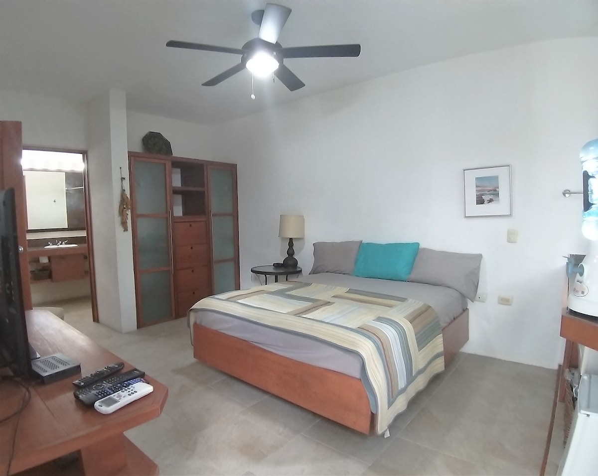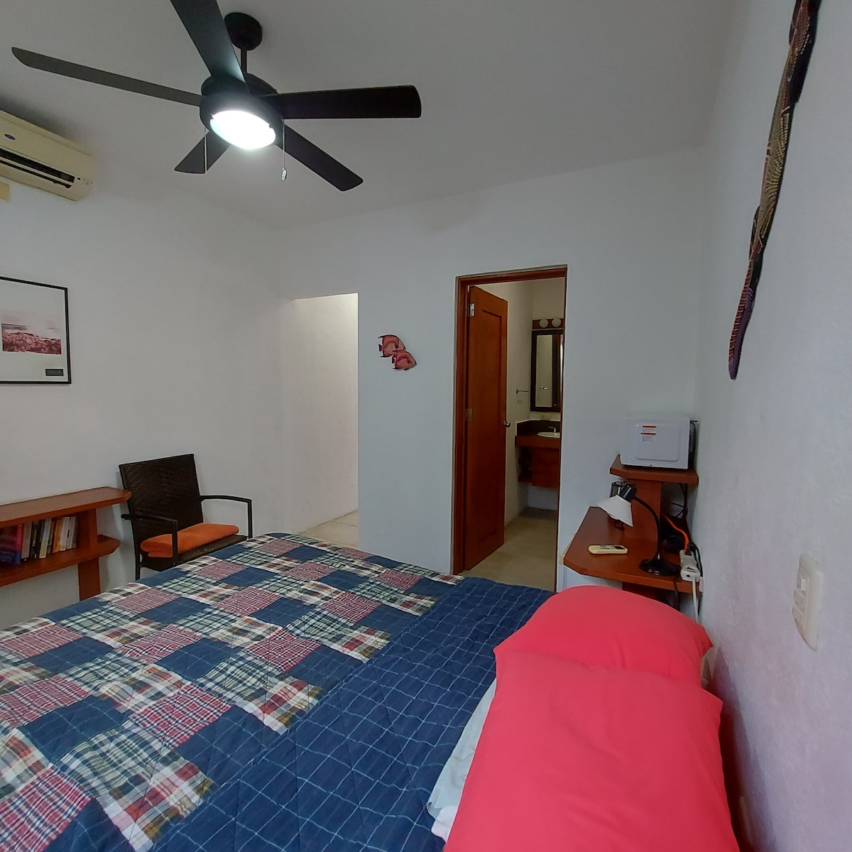 Ideal space for 3 guests to enjoy a relaxing stay on the Island of Cozumel, with an excellent location. Just a pleasant walk around the neighborhood gives you easy access to supermarkets, restaurants, charming spots to watch the sunset on the boardwalk, and the beach just a few blocks away. Our home is right next to the apartment, and we’ll be available to support and assist you with anything you may need.
