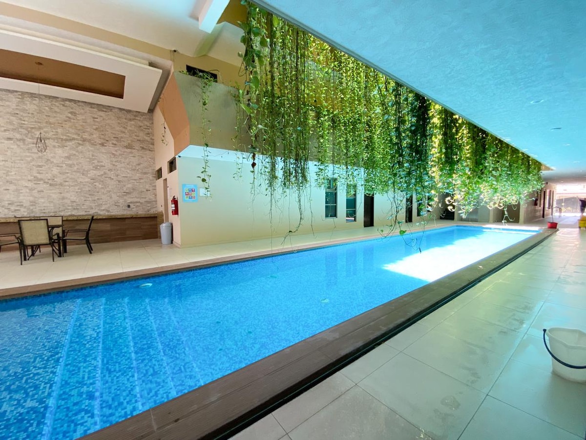 位于市中心的可爱套房,带健身房、泳池和桑拿房