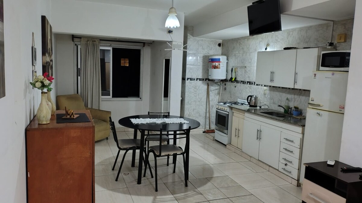 Amplio departamento a estrenar, completamente equipado, aire acondicionado (frio calor), smart TV 4k, cortinas black-out, somier de 2 plazas, sofa cama para 2 personas, Wifi, jabon, toallas, shampoo, vajilla completa. Salón de usos múltiples (con reserva segun disponibilidad) y pileta. Excelente ubicación, cerca de los principales puntos de interés (Plaza Independencia, Casa Histórica, Catedral). Zona segura en la que se puede encontrar transporte publico, panaderías, despensas, bares, etc