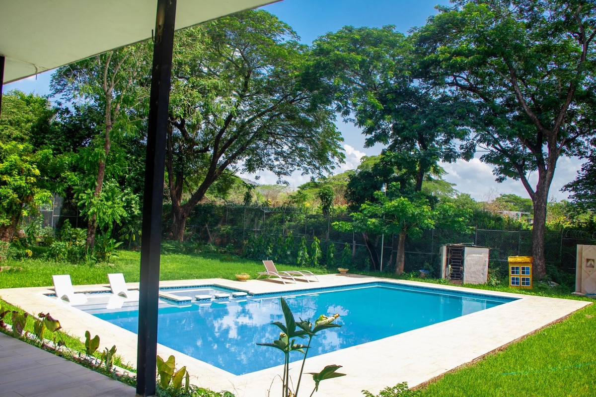 Descubre una encantadora casa de campo en el Caserío El Volcán de San Miguel (Tambien conocido como Volcán Chaparrastique), rodeada de un espectacular patio exterior lleno de árboles frutales. Relájate en la piscina y el jacuzzi, o aprecia las aves locales que visitan el lugar. Ubicada a solo 20 minutos de la ciudad de San Miguel y a 2 horas y media de San Salvador, esta casa es el refugio perfecto para desconectar y disfrutar de la naturaleza.