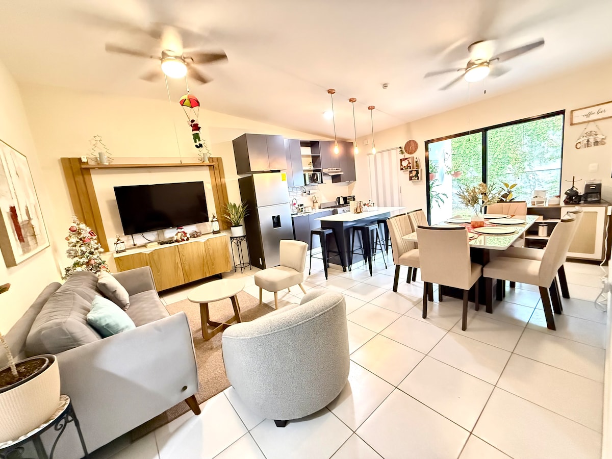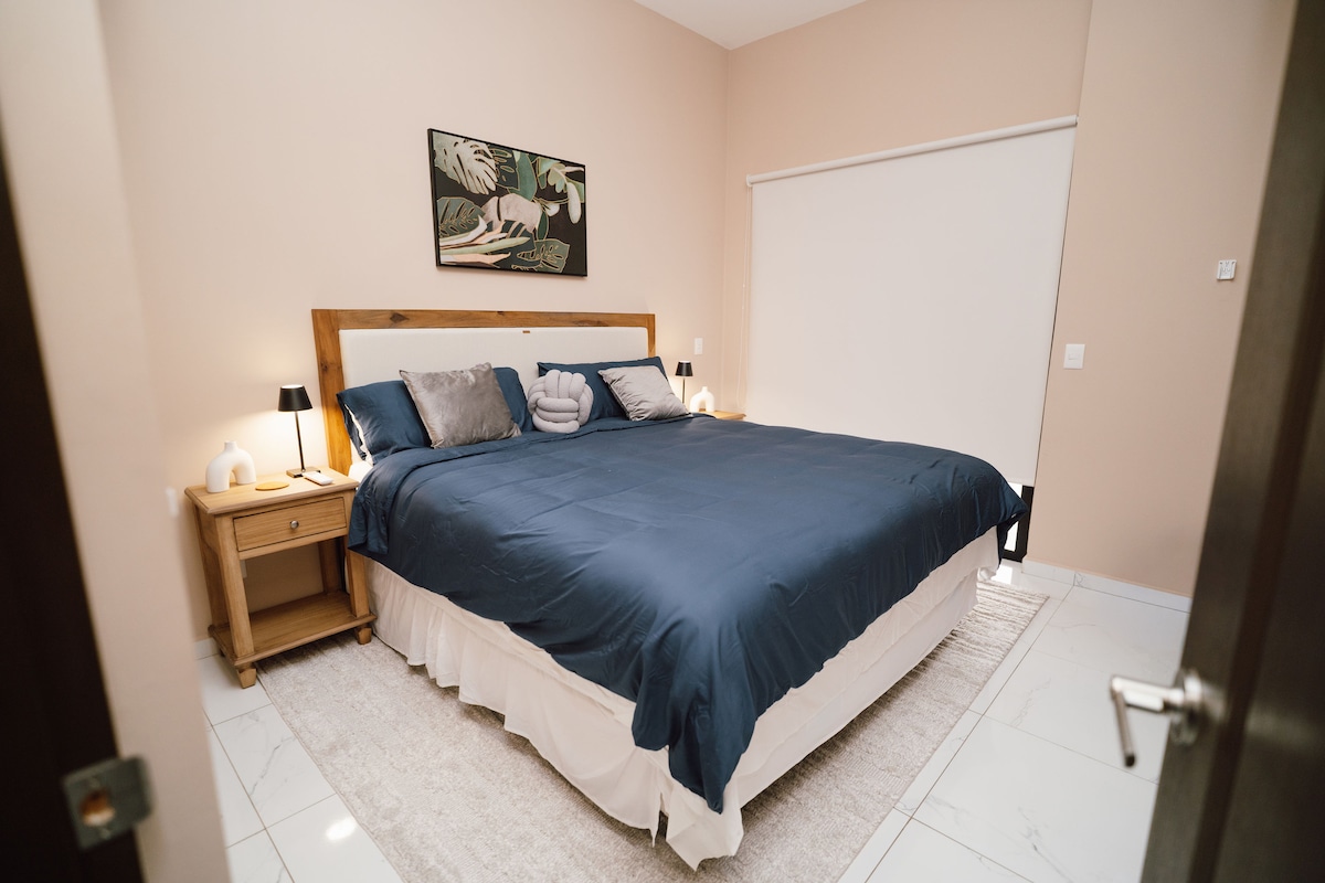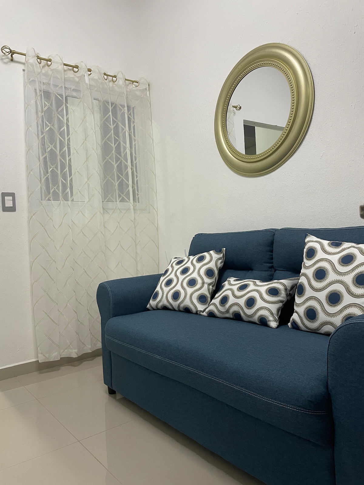 Welcome to Modern Retreat, your family-friendly haven in San Miguel, SV! Nestled in the serene gated neighborhood of Nueva San Miguel, Modern Retreat offers a spacious and elegantly decorated home perfect for large families. This stylish unit blends modern comfort with a classy design for an unforgettable stay. It has three bedrooms, an ensuite bathroom and a guest bathroom comfortably accommodating six guests. The kitchen boasts modern appliances and everything you need for a comfortable stay.