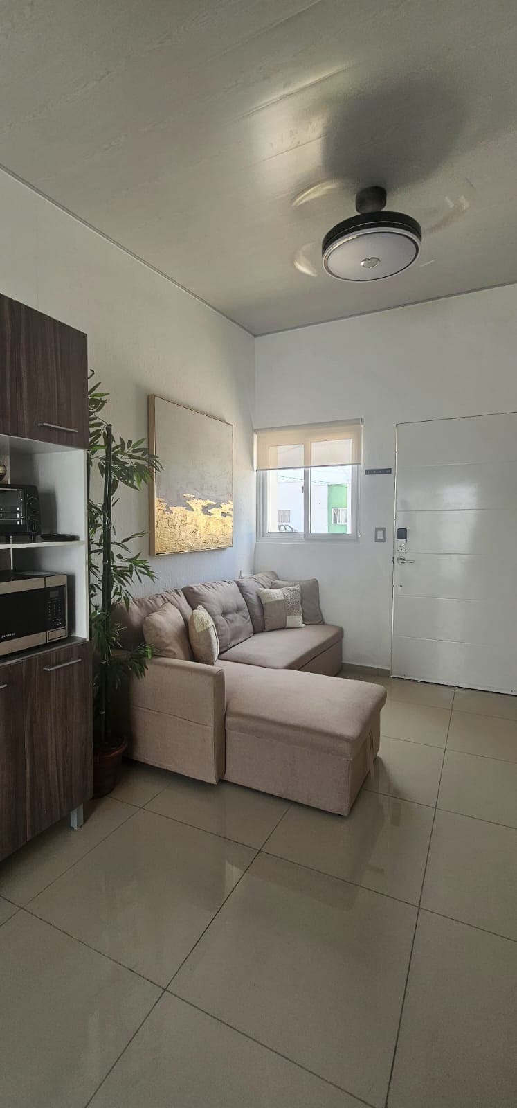 Vivienda ESPACIOSA, cuidamos mucho de dar el ASEO CORRECTO, capacidad para 5 huéspedes en zona privada a 5 Min de Centro Comercial El Encuentro El Sitio, disfruta la MEJOR UBICACIÓN DE SAN MIGUEL. Con una amplia cochera techada para 2 vehículos sin portón. Casa concepto abierto con aires acondicionados en cada espacio para mantener un clima fresco y refugiarse del calor en San Miguel! Teclado digital para entrar, ambiente SILENCIOSO y SEGURO. Te esperamos.