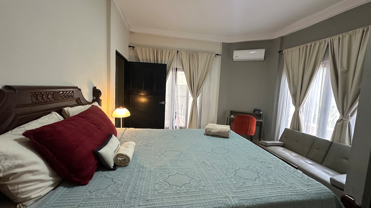 Disfruta de la seguridad de este alojamiento tranquilo y céntrico con excelentes atardeceres. Casa de 2 dormitorios con un concepto elegante en una zona residencial completamente cerrada, cuenta con Netflix y su propio Mall Panamericana. Llegada a partir de las 3:00 p. m. y salida hasta la 12:00 p. m., programación de la modificación $10 por hora. La tarifa base cubre a 4 personas. Un huésped adicional como máximo son $15 por persona y noche. Sera un gusto atenderte