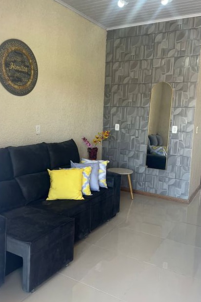 Casa aconchegante de frente para o mar, com 1 quarto de casal, sala com sofá (acompanha 1 colchão de casal), sacada de frente para o mar, cozinha americana com churrasqueira e fogão mineiro, banheiro, máquina de lavar roupa, pátio e garagem.