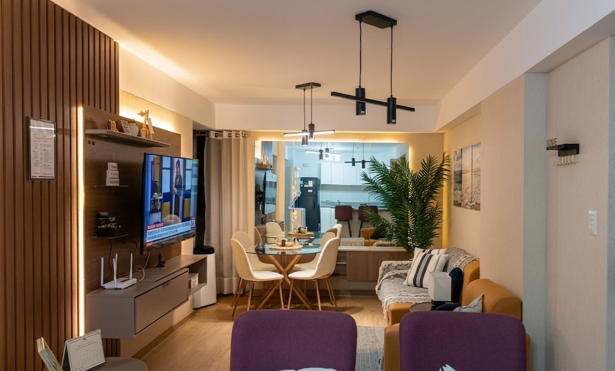 Todo el Departamento para Ti, también para escalas de vuelos, cerca al Aeropuerto (20 min) Relájate y disfruta sus ambientes tranquilos, elegantes con una vista espectacular de día, y de noche el espectáculo visual de la ciudad desde el balcón de tu habitación. Vive una experiencia en un lugar Seguro residencial y céntrico de la capital con acceso a una experiencia gastronómica y relajo totalmente excepcional, con gimnasios, restaurantes, tiendas, bancos y centros comerciales a solo un paso.