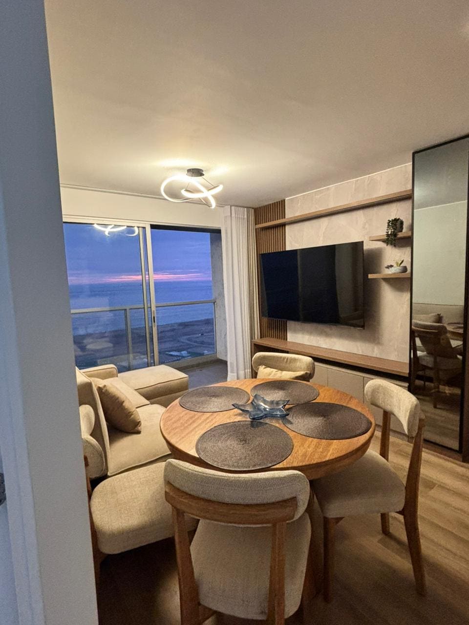 Despierta con vistas espectaculares al mar en este moderno loft en el piso 10. • 2 dormitorios con baño privado y cocina equipada • Sala de estar y balcón privado con atardeceres únicos • Amenidades exclusivas: piscina, gimnasio, sala-bar y parrilla • A pasos del malecón, parques y restaurantes Ideal para quienes buscan lujo, confort y una experiencia costera inolvidable frente al mar.