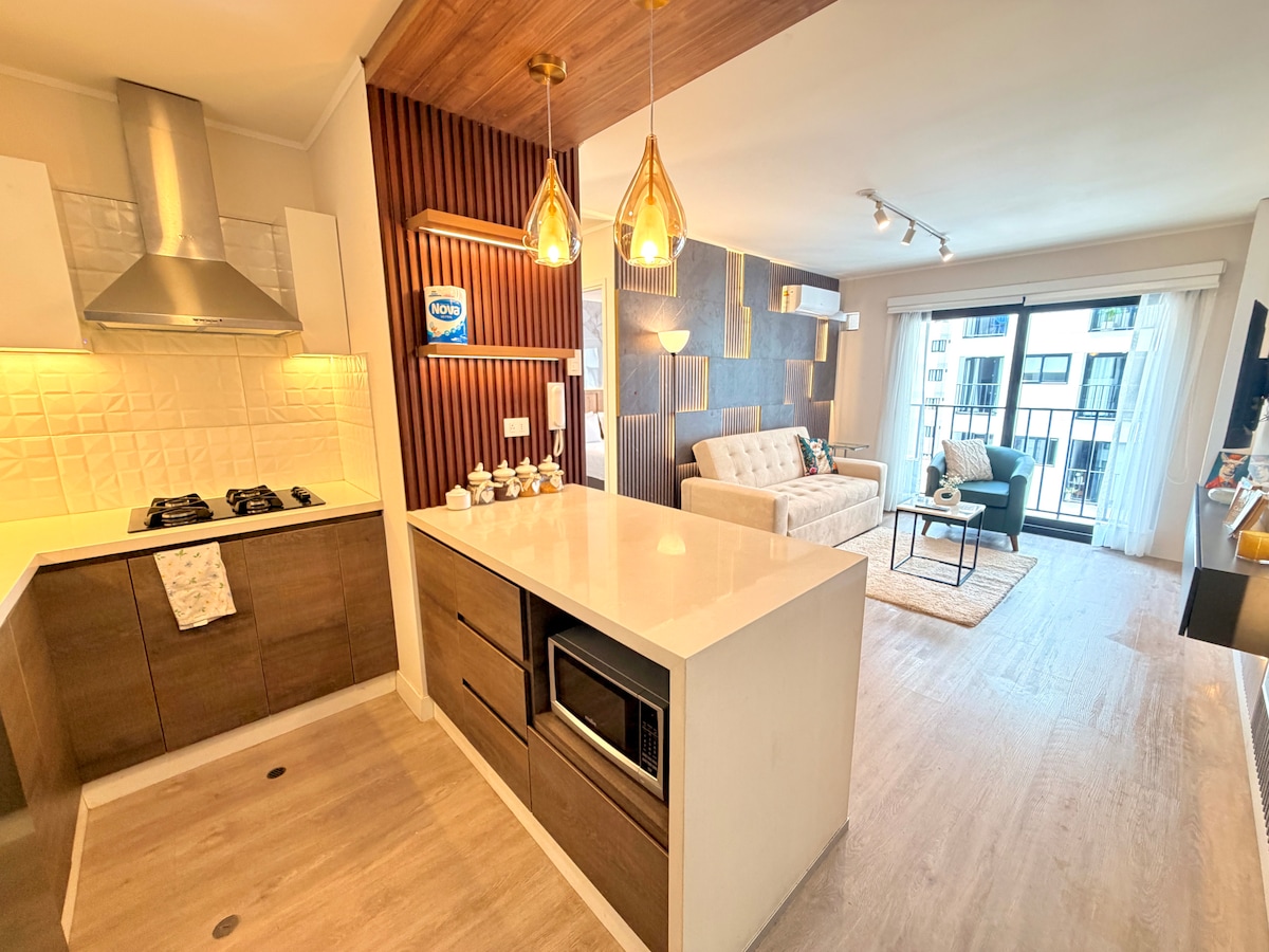 Modern fully furnished apartment, ideal for long stays. Features high-speed Wi-Fi, a 65” Smart TV with Netflix and Disney+, a fully equipped kitchen with espresso machine and water filter, washer-dryer, queen-size bed, and a balcony. The building offers a swimming pool, gym, and coworking area. 24/7 self check-in, smartkey, free parking, and 24-hour security. Strategically located in San Miguel, close to universities and shopping centers, and less than 20 minutes from the airport.