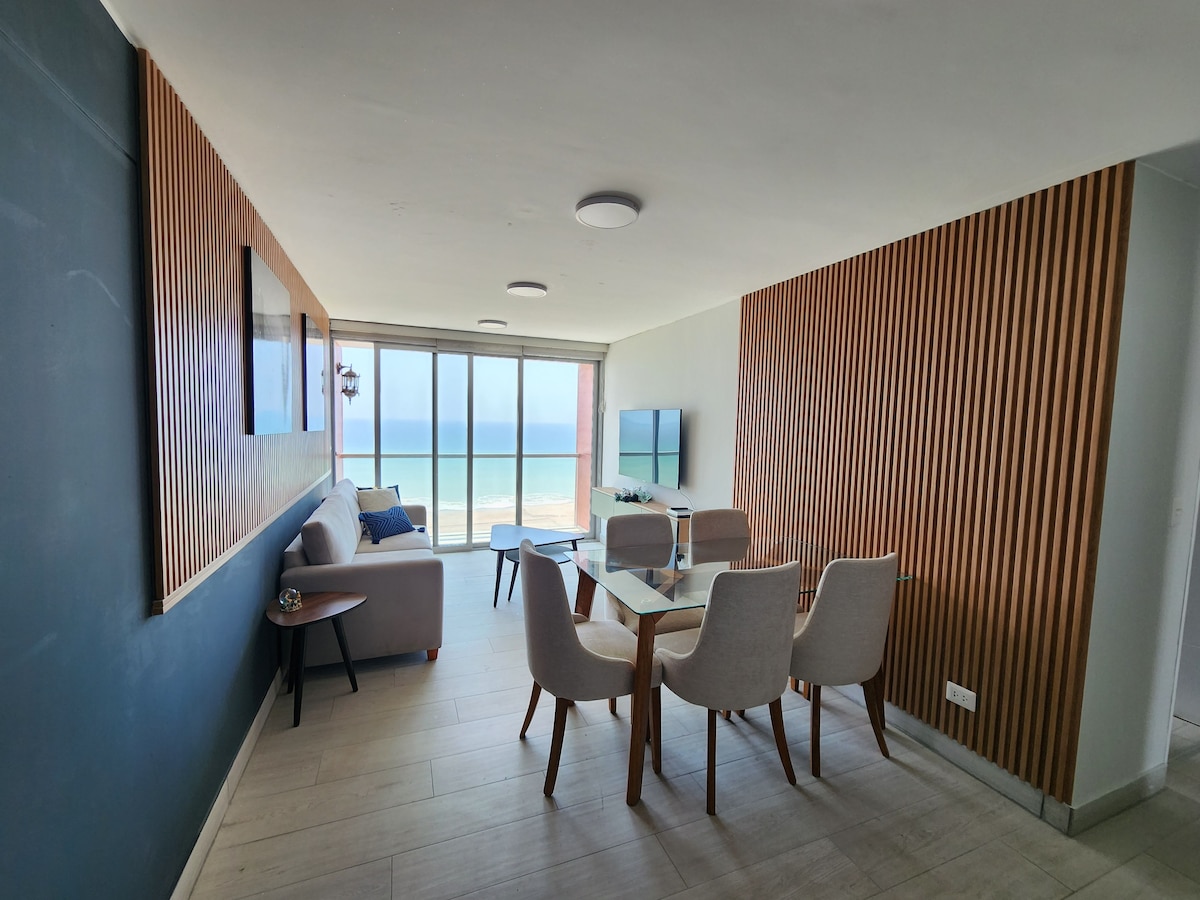 Despierta con vistas espectaculares al mar en este moderno loft en el piso 10. • 2 dormitorios con baño privado y cocina equipada • Sala de estar y balcón privado con atardeceres únicos • Amenidades exclusivas: piscina, gimnasio, sala-bar y parrilla • A pasos del malecón, parques y restaurantes Ideal para quienes buscan lujo, confort y una experiencia costera inolvidable frente al mar.