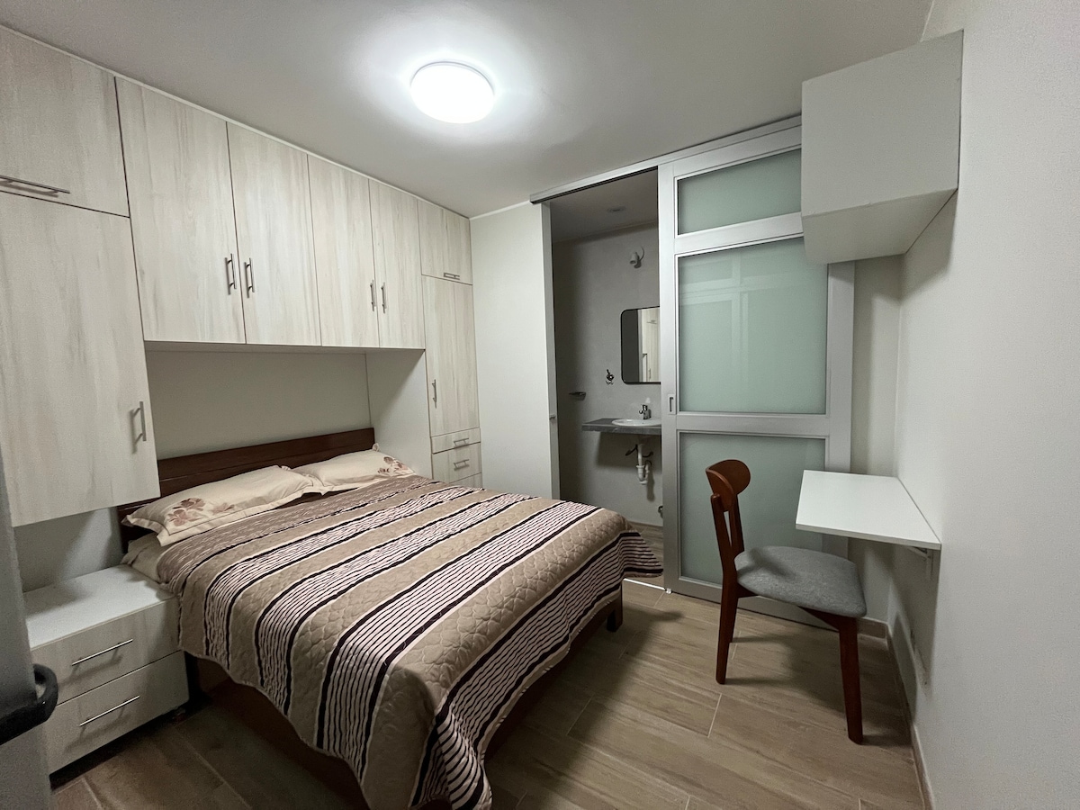 Moderno departamento en primer piso con 2 habitaciones, cada una con armario empotrado, zona de trabajo y baño privado 🚿💻. Sala con TV, comedor cómodo 📺🍽️ y cocina a gas equipada con ollas y tetera 🍳🫖. Área de lavado para lavar a mano 👕🧼. Internet por fibra óptica ⚡📶. Ubicación céntrica: cerca de avenidas, panaderías, minimarkets, parque y mercado 🏙️🥖🛒. A 25 min del aeropuerto y 30 del terminal Plaza Norte ✈️🚌. Ideal para viajes de trabajo, con amistades, familia o turismo..